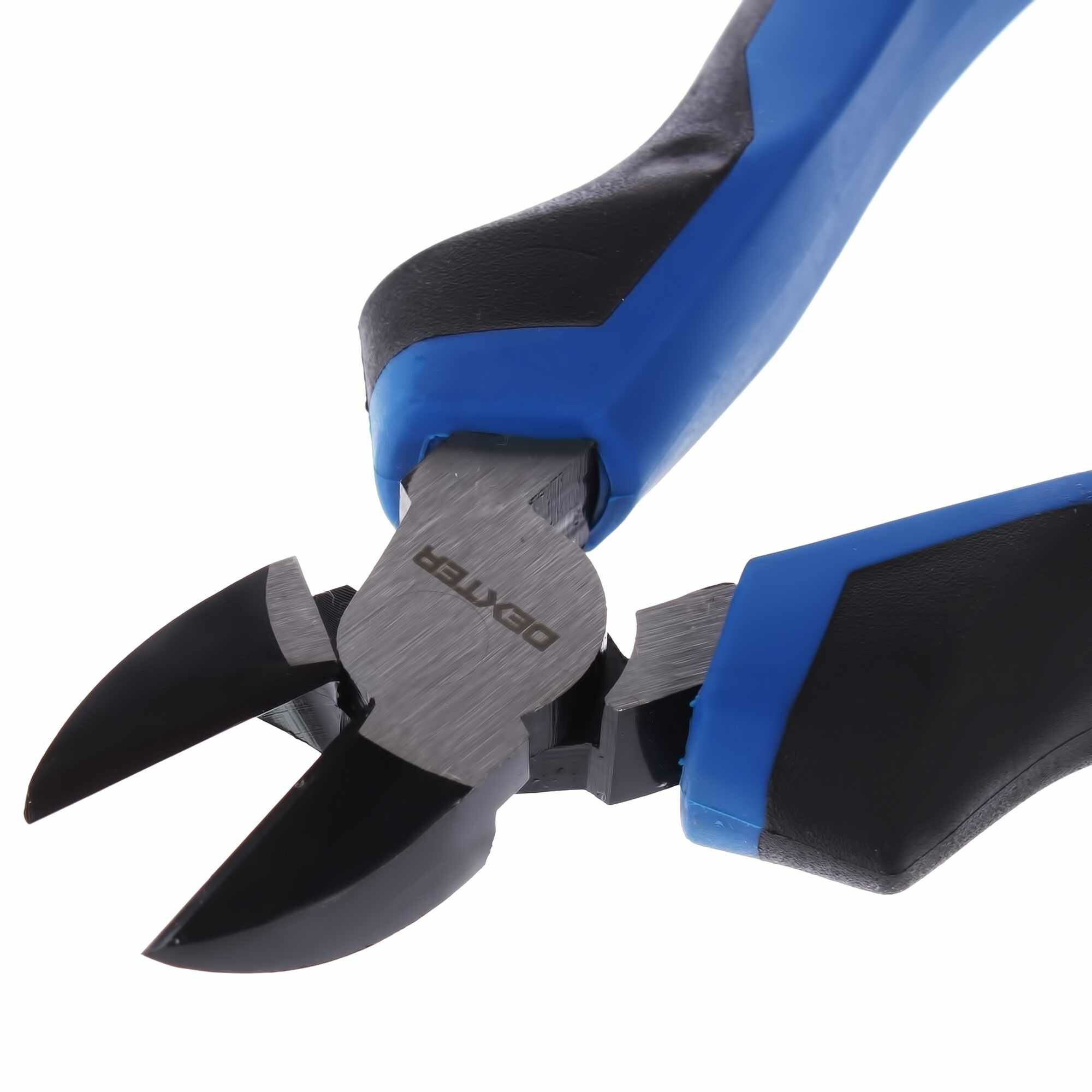 Кусачки Dexter боковые — слесарный инструмент для разрезания проводов и проволоки толщиной до 1,6 мм. Чем тоньше проводник, тем ближе к кончику инструмента он перемещается: таким образом регулируется прилагаемое усилие. В боковых кусачках режущая часть находится в одной плоскости с рукоятью. Шарнирное соединение обеспечивает плавный ход и смыкание губок.