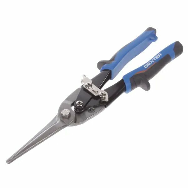 Ножницы по металлу Dexter ― ручной специализированный инструмент, предназначенный для резки по железу. Позволяет работать с тонкими листовыми или профильными металлическими деталями и элементами. Рабочая часть с шиферным типом кусачек изготовлена из высокопрочной стали. Этот материал устойчив к деформации и механическим нагрузкам, благодаря чему обеспечивает длительный срок службы инструмента.