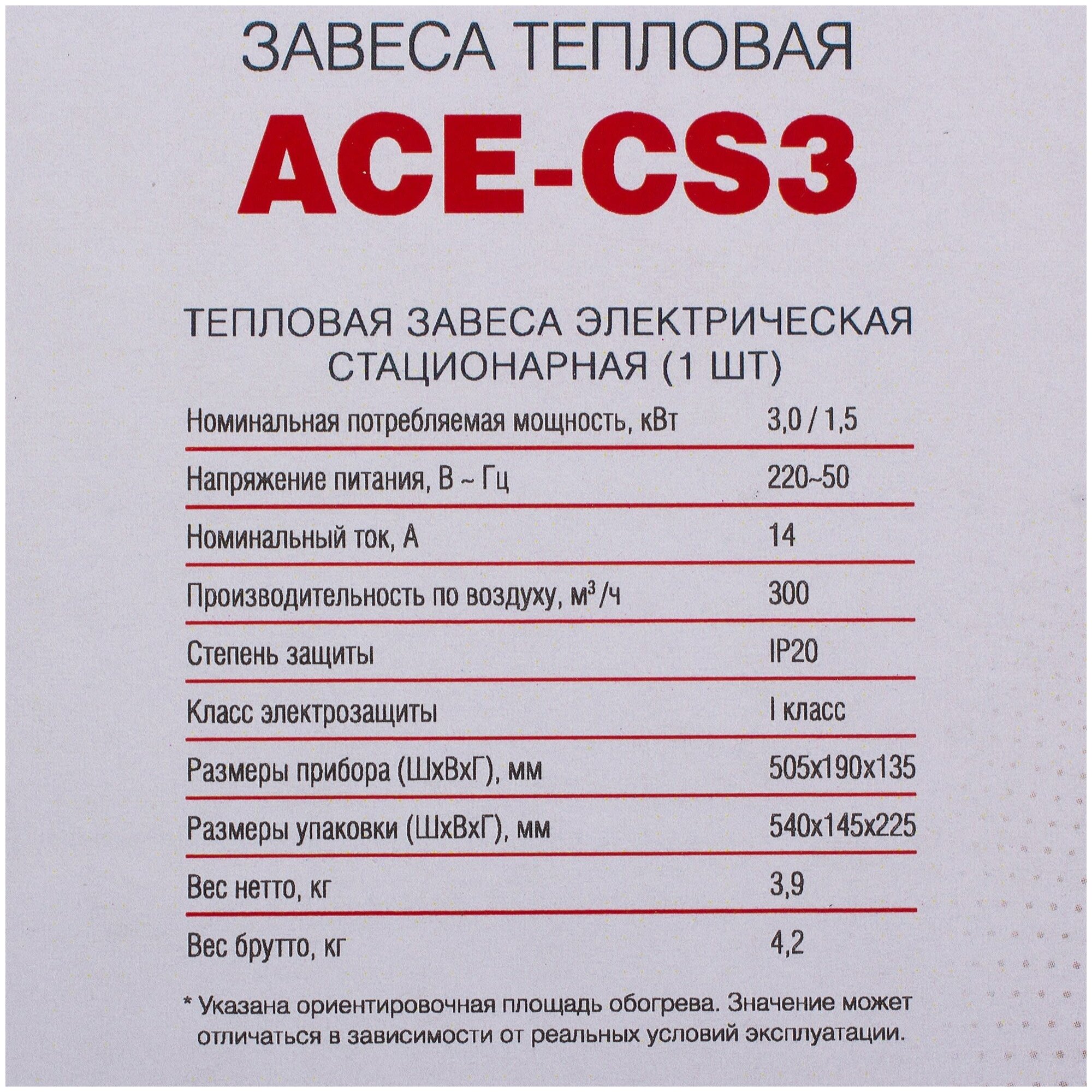 Тепловая завеса AC Electric ACE-CS3 3000 Вт