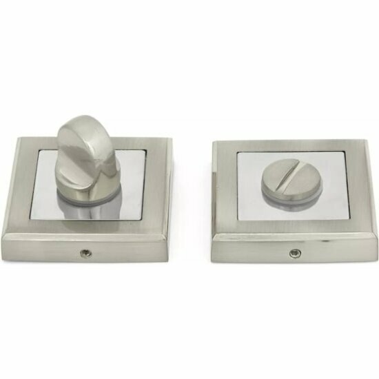 Накладка фиксатор Фабрика замков цвета «матовый никель» позволяет запирать межкомнатную дверь изнутри. Работает в паре с механической защелкой под квадрат 6 мм. Состоит из накладки с заверткой для внутренней стороны двери и накладки с прорезью — для внешней. Вторая накладка дает возможность разблокировать механизм в непредвиденных ситуациях. В качестве ключа может использоваться любой узкий и плоский предмет — например, монета.