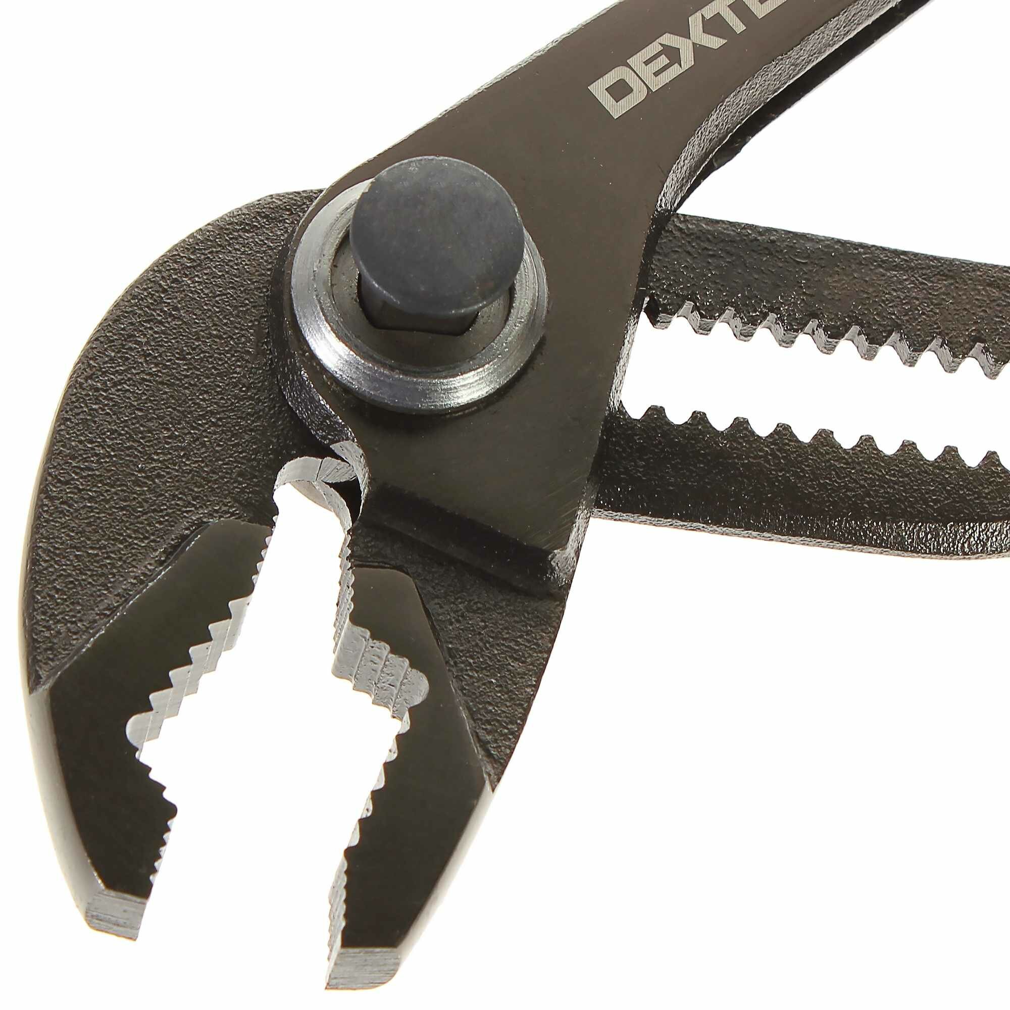 Клещи Dexter Pro переставные 250 мм - универсальный инструмент для захвата предметов разных форм и размеров. Насечки на губках обеспечивают крепкий и надежный захват детали.