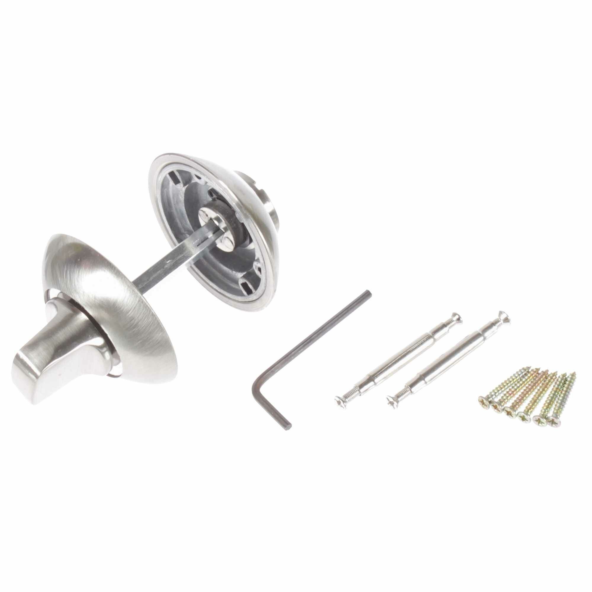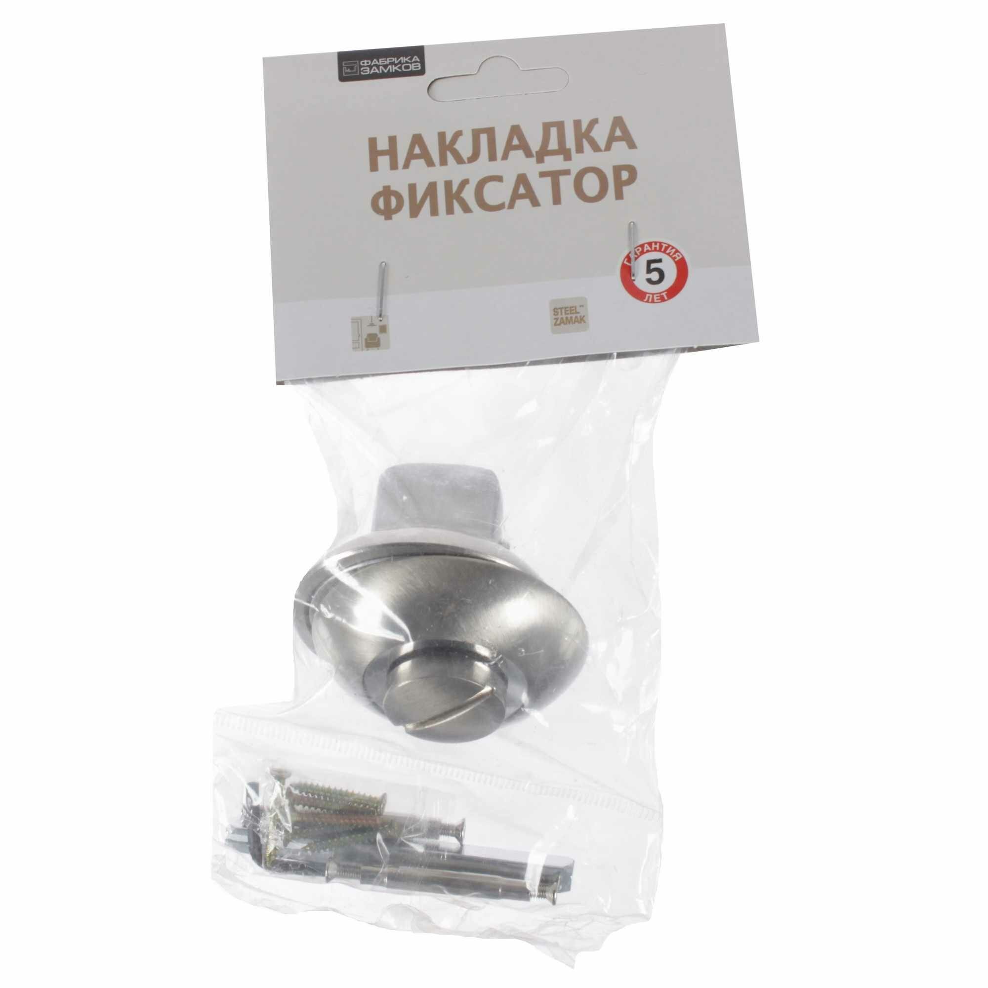 Накладка фиксатор Фабрика замков A 1 BK SN — разновидность дверной фурнитуры, которая дает возможность закрывать помещение изнутри. В комплект входят две накладки, одна из которых с заверткой, а вторая — с прорезью для экстренного открывания. При монтаже первый элемент следует размещать внутри помещения, второй — снаружи. Накладка выполнена в элегантном цвете «матовый никель», который сочетается практически с любой палитрой интерьера.
