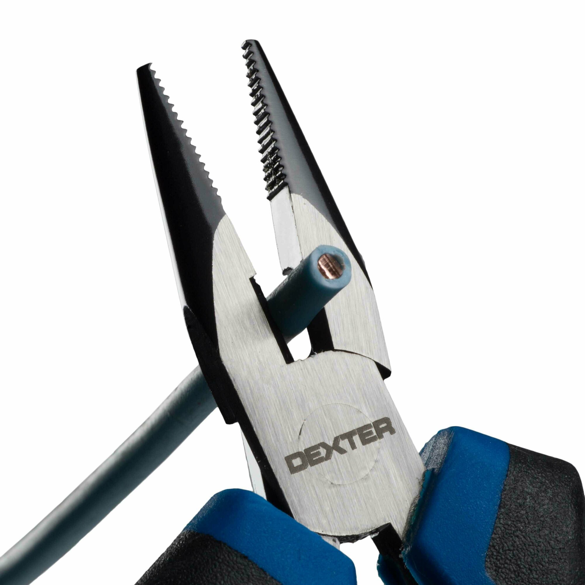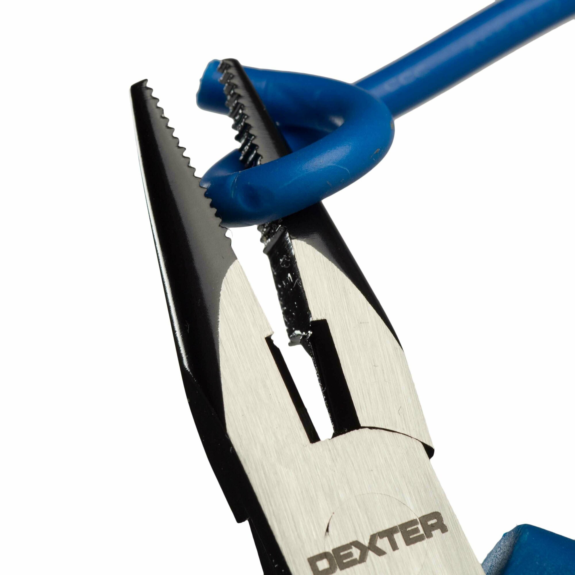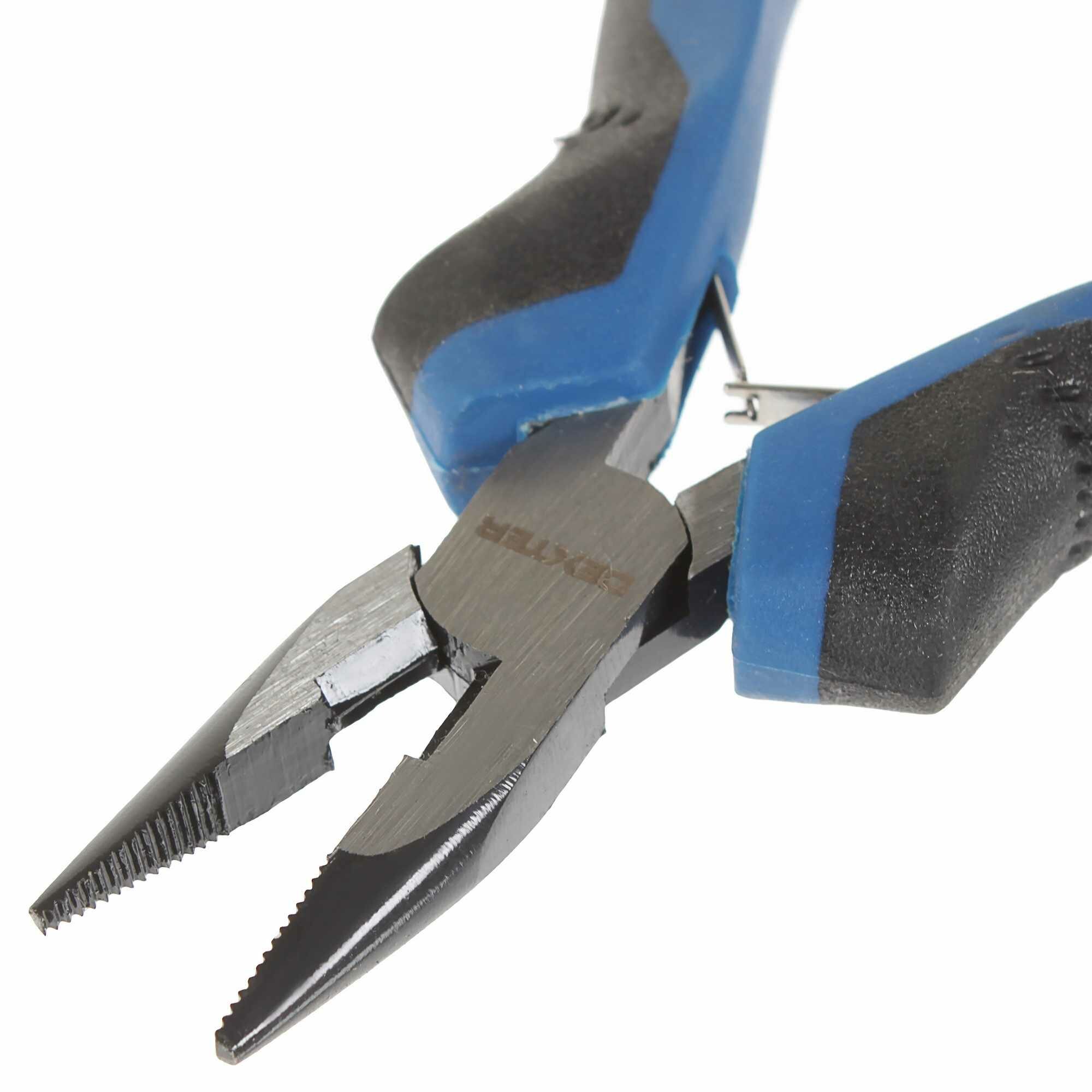 Мини-длинногубцы Dexter — слесарный инструмент для работы с мелкими деталями и комплектующими. Применяются для фиксации крепежа, загиба и выравнивания проволоки или узких пластин.