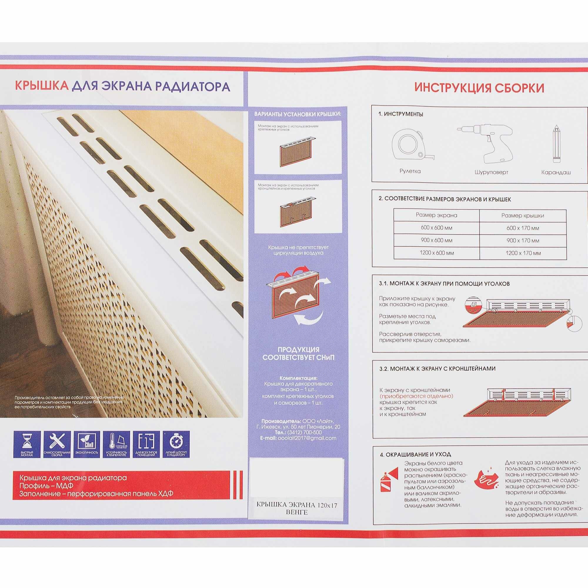 Тип товара: Экраны для радиаторов