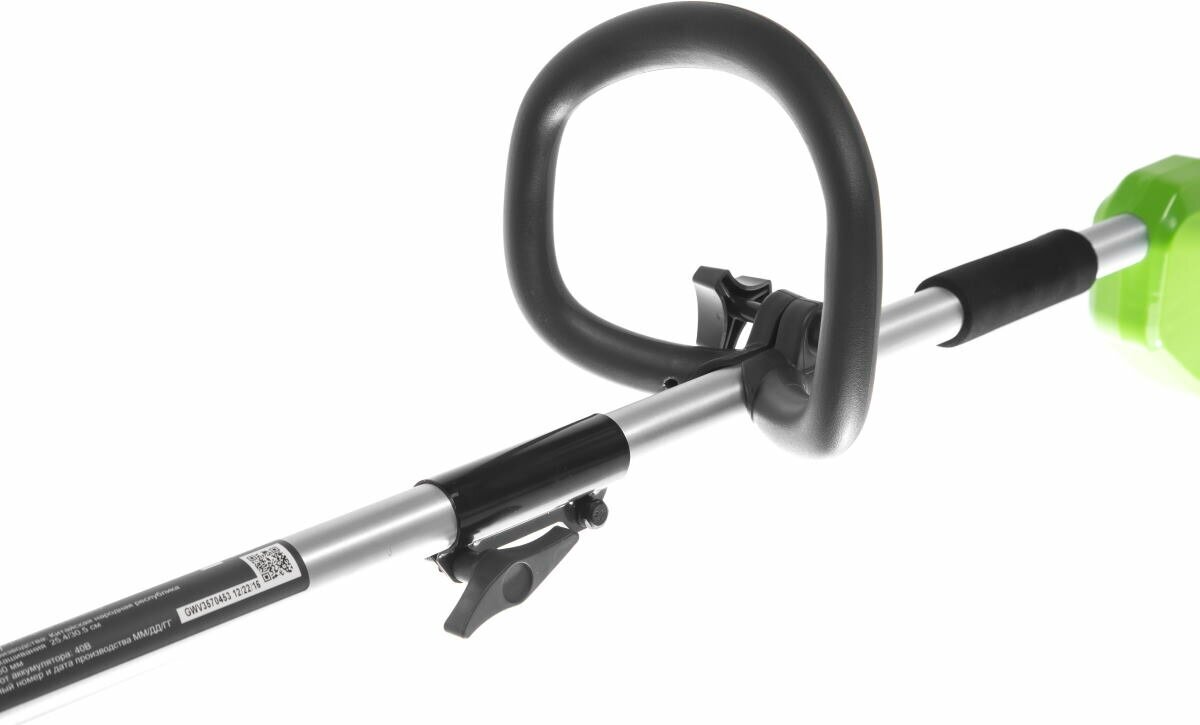 Возможность регулировки положений опорной рукояти обеспечивает комфортное использование триммера во время его использования, а возможность разделения на две основные части ведущего вала упрощает хранение устройства после эксплуатации.