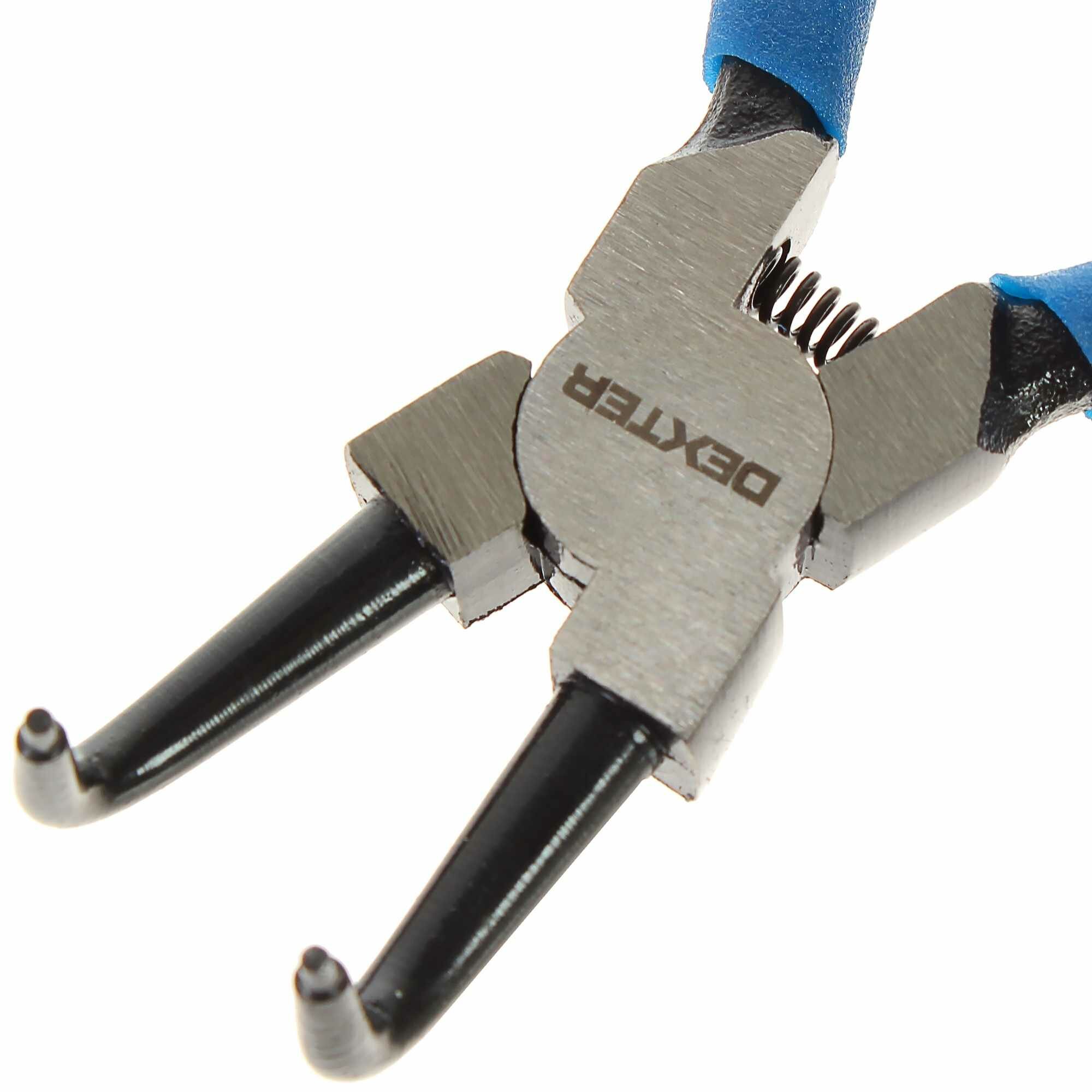 Съемники для внутренних стопорных колец Dexter с изогнутыми губками — шарнирно-губцевый инструмент, предназначен для снятия и установки стопорных колец. Благодаря изогнутой рабочей части инструмент справляется со своими задачами даже в труднодоступных местах. Такие плоскогубцы пригодятся и домашнему мастеру, и профессионалу.