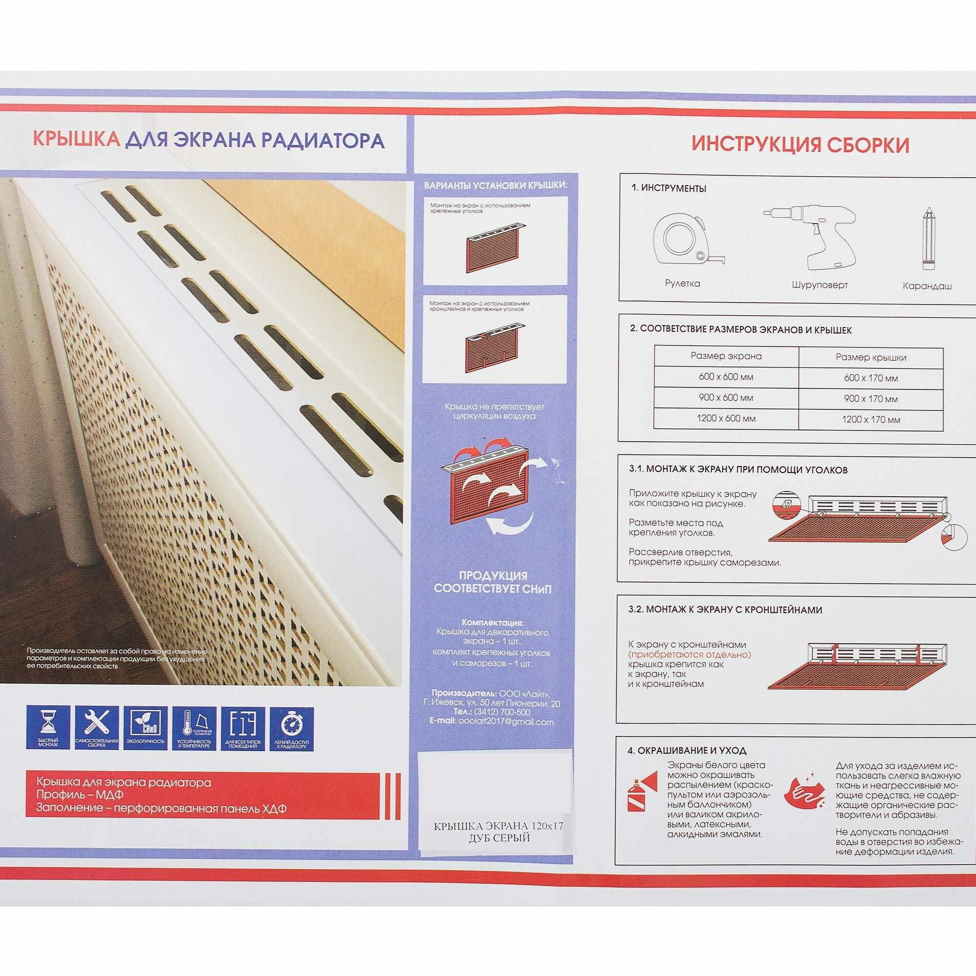 Тип товара: Экраны для радиаторов