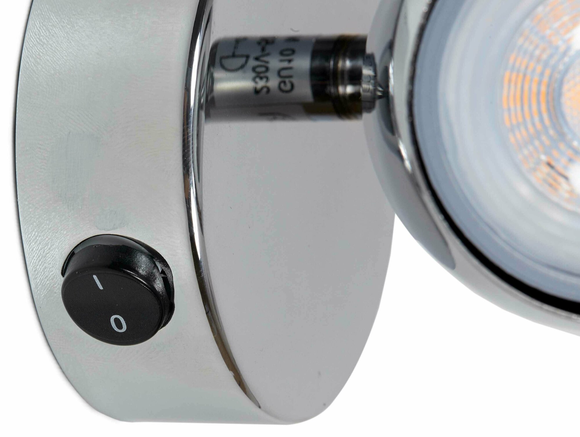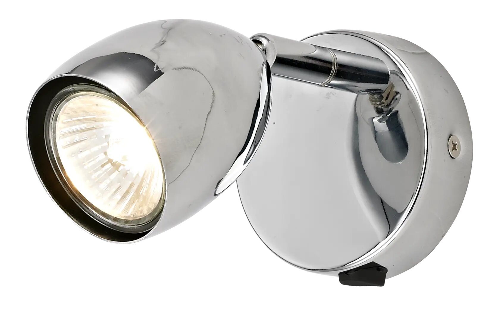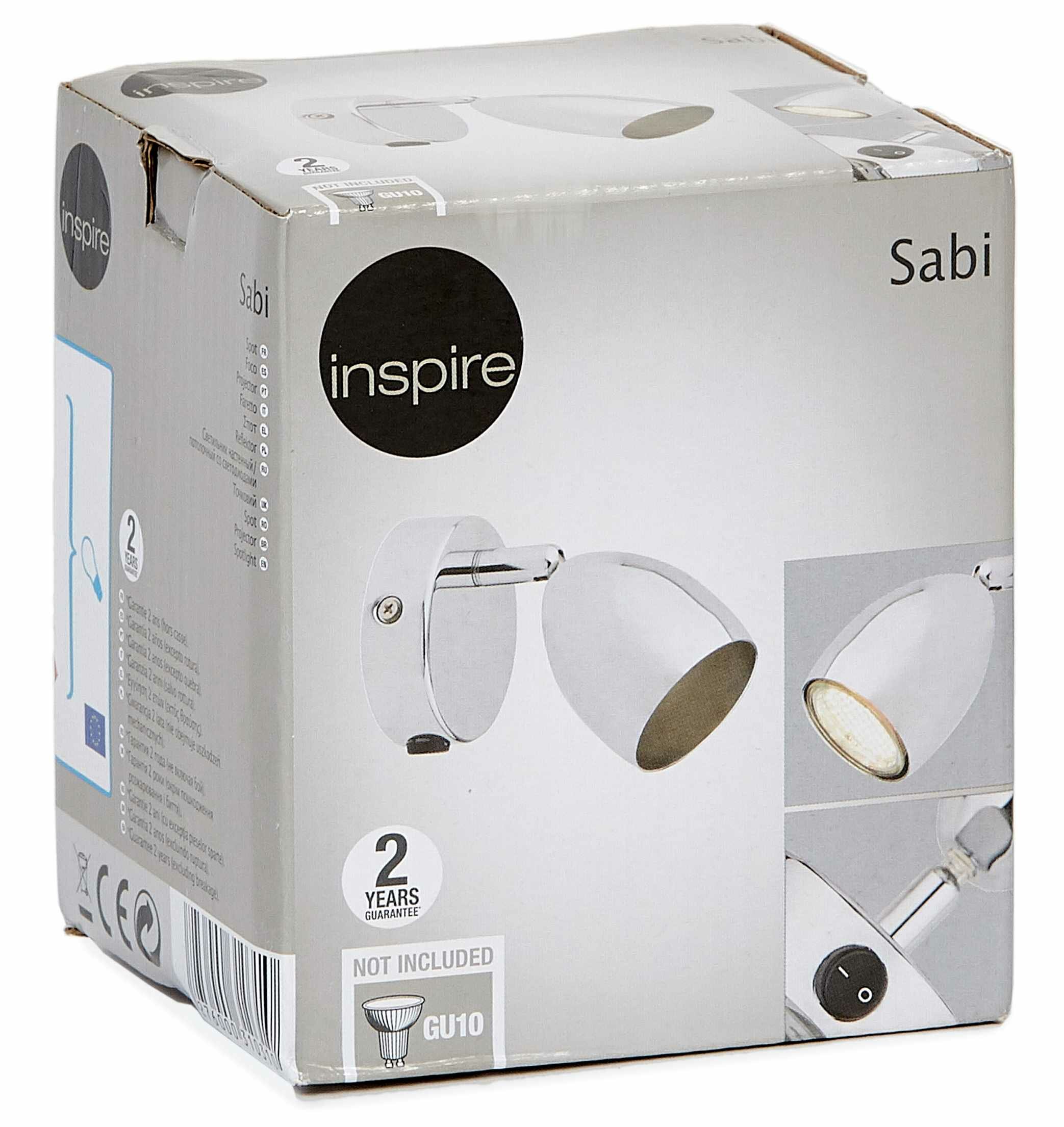 **Спот поворотный Inspire Sabi** выделяется благодаря хромированной поверхности плафона и базы. В зависимости от целей может использоваться как основной источник света или дополнительная подсветка. Лампочки подбираются самостоятельно исходя из пожеланий владельца. Необходимо покупать лампы с цоколем GU10 максимальной мощностью до 10 Вт каждая.