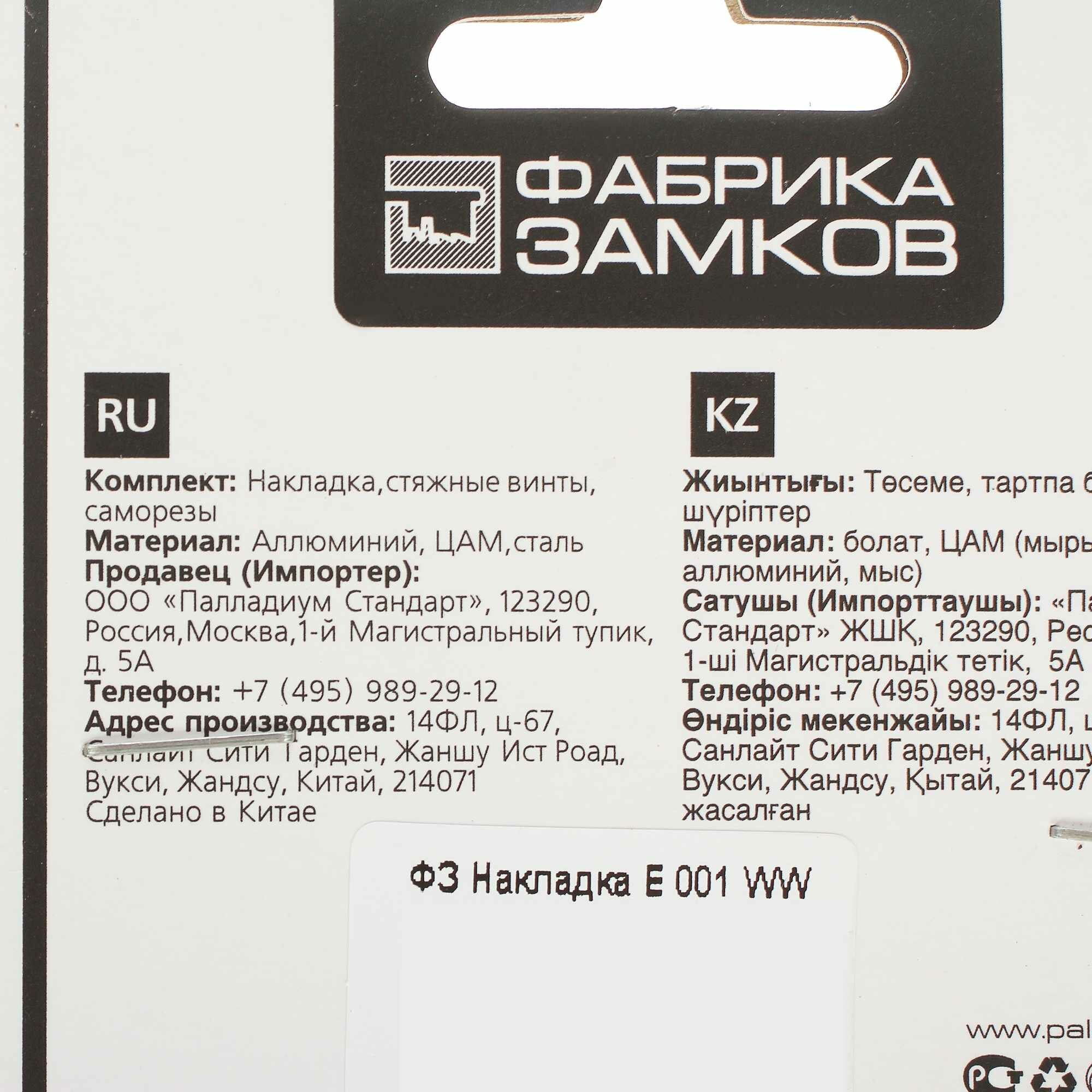 Накладка на цилиндр Фабрика замков Е 001 цвет белый (ФЗ Е 001 WW)