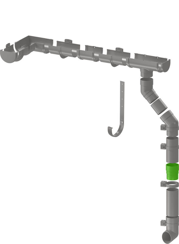 Верхняя часть водосточной трубы вставляется в широкую часть муфты до упора, а затем выдвигается на 10 миллиметров. Зазор предотвратит деформацию при температурном расширении труб.