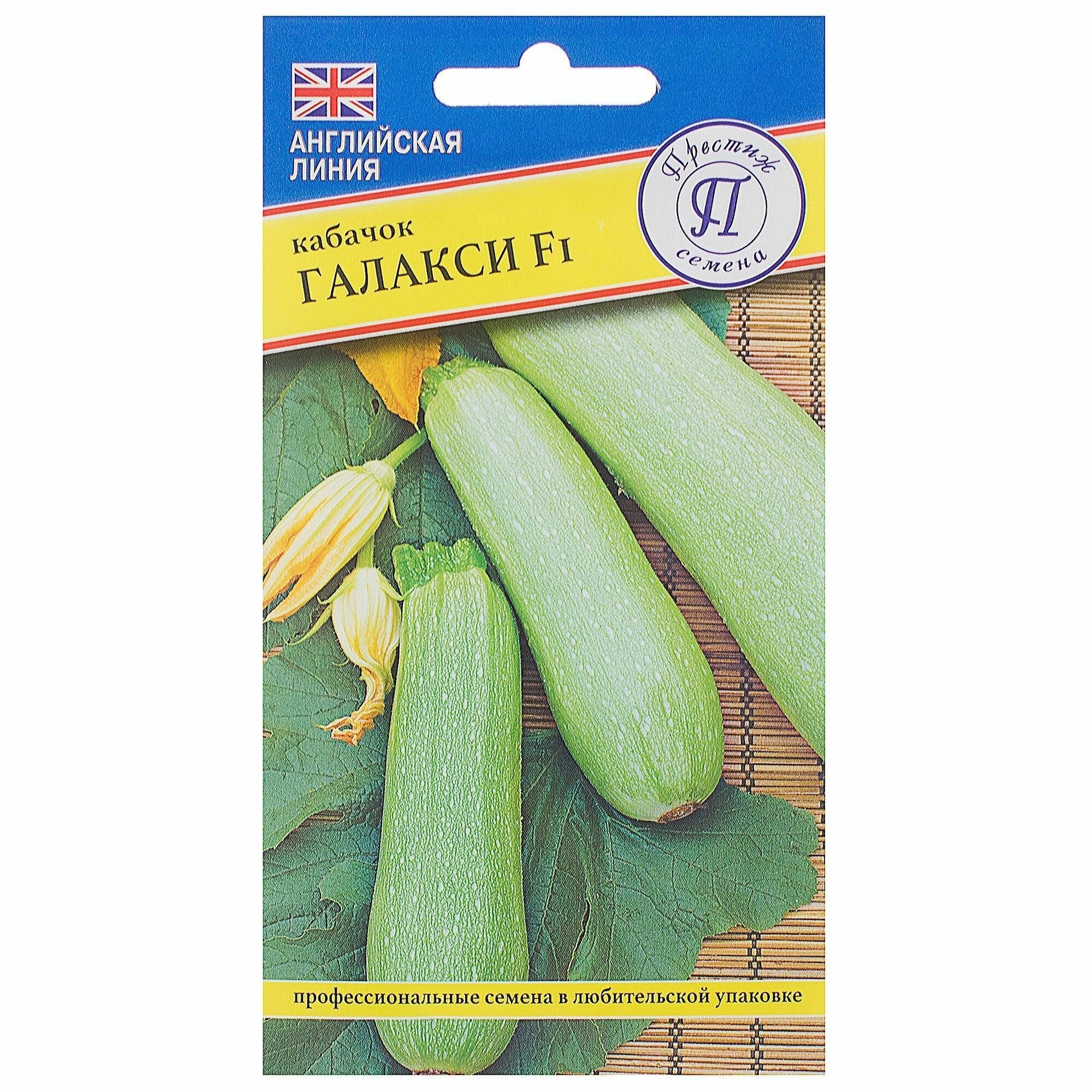 Кабачок «Галакси» F1 — среднерослый гибрид английской селекции раннего срока созревания. Растение кустовое, компактное, отдает ребристые, цилиндрической формы плоды, светлые, весом до 600 г. Мякоть сочная, бело-зеленая, отличного вкуса.