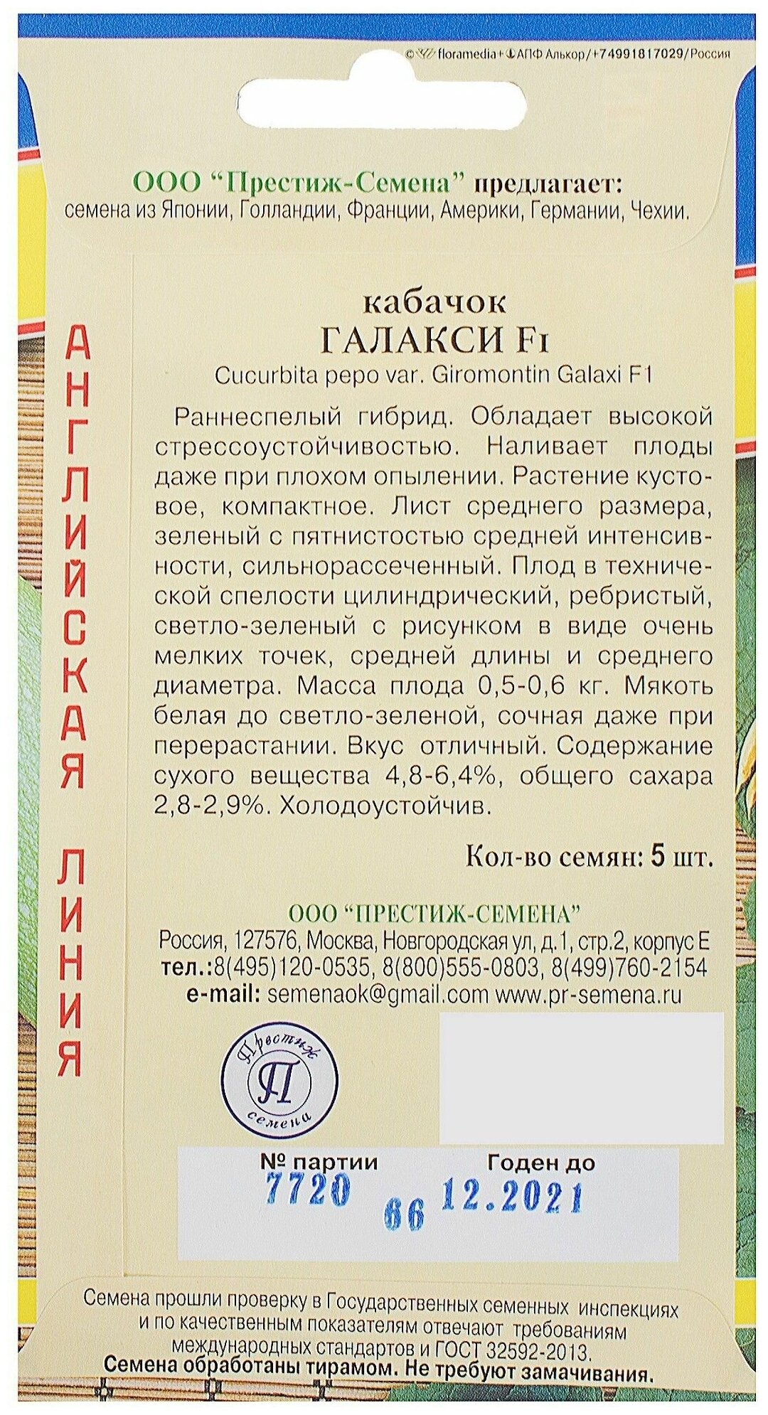| Марка | ПРЕСТИЖ СЕМЕНА |