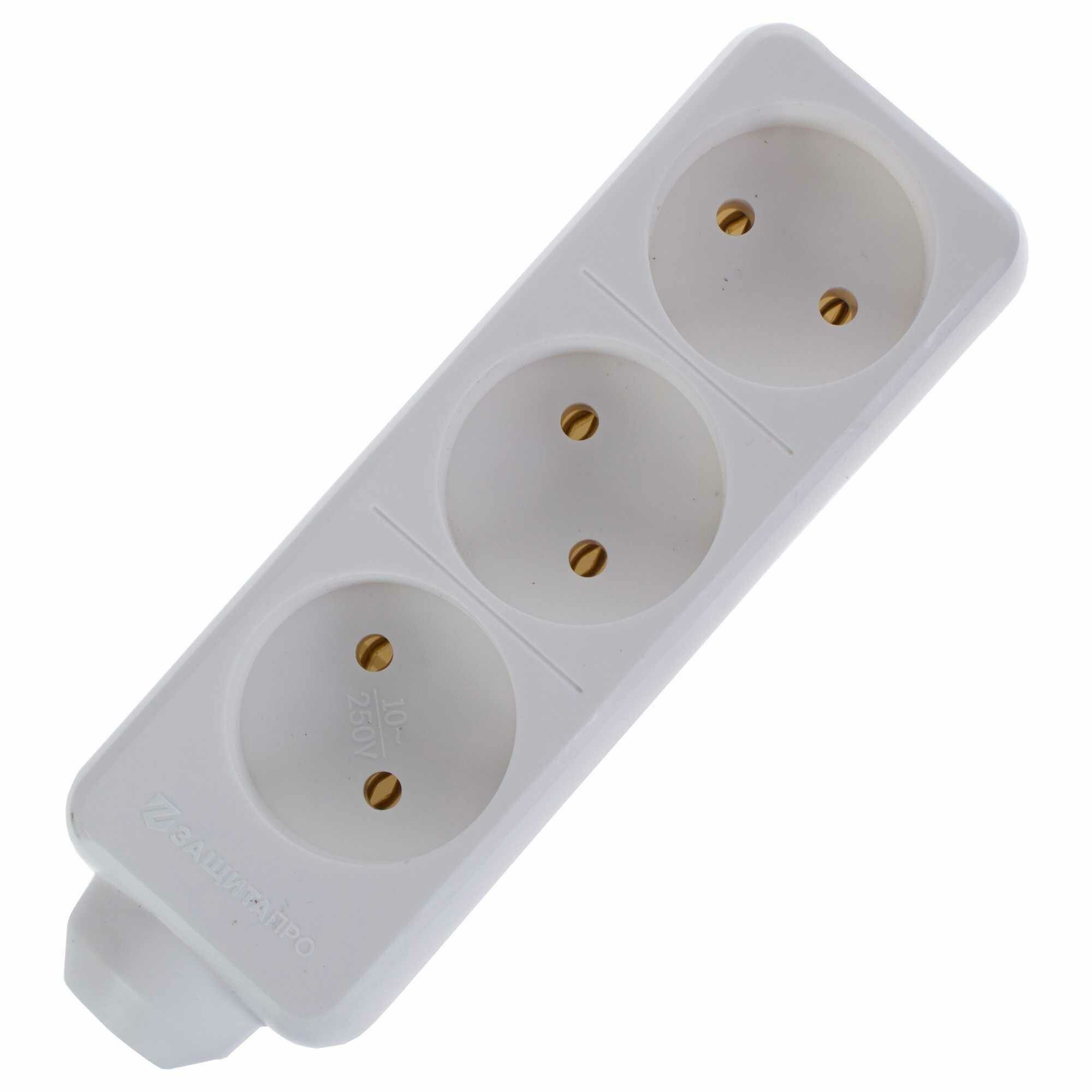 Колодка — составная часть удлинителя. Применяется внутри помещения для подключения одновременно 3 устройств к электросети. Колодка решит проблему недостатка розеток. Заземление отсутствует.