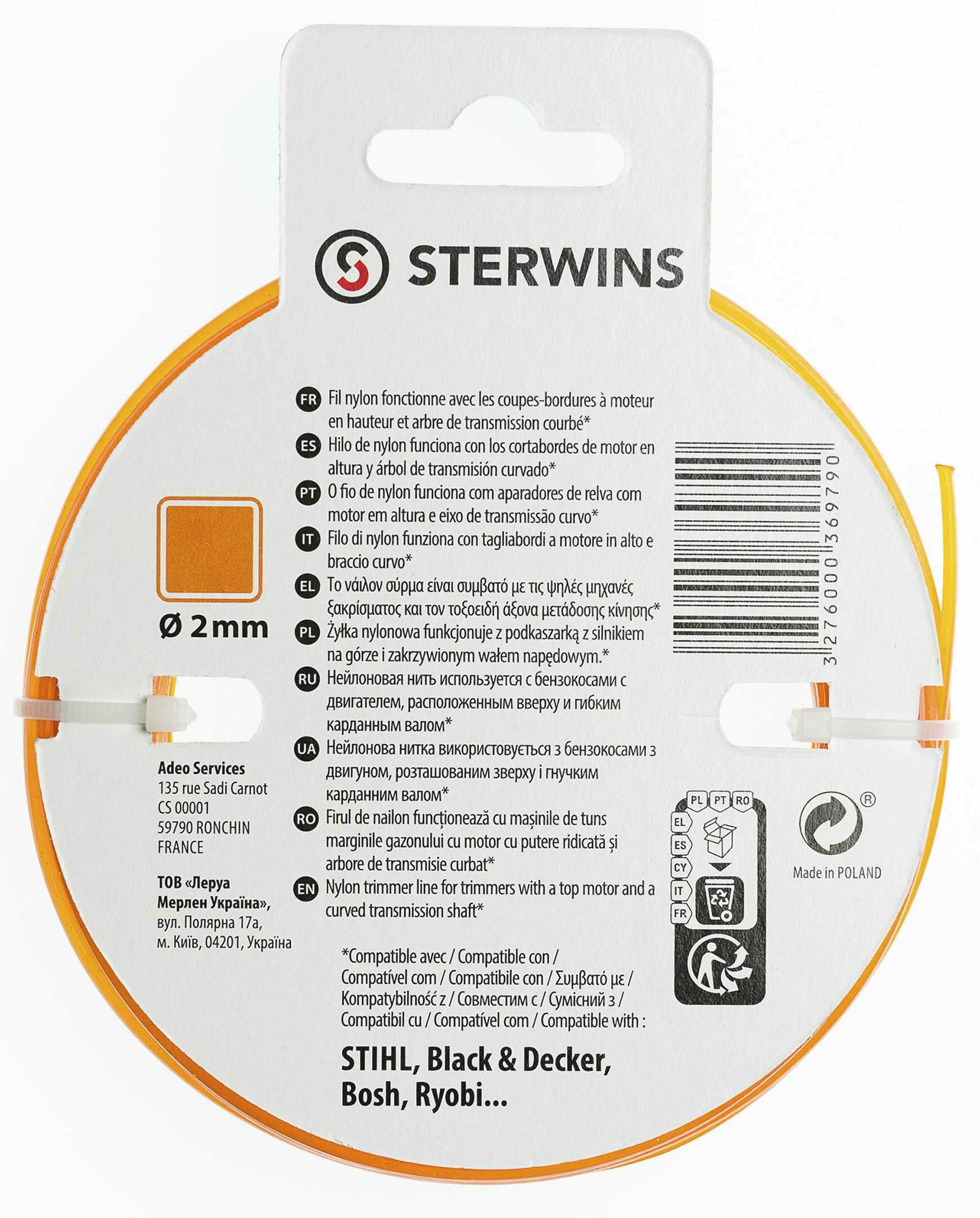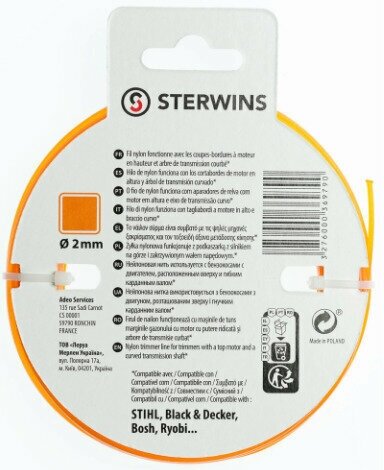 Леска сменная для триммера Sterwins изготовлена из нейлона толщиной 2 мм. Лески такого диаметра подходят для: