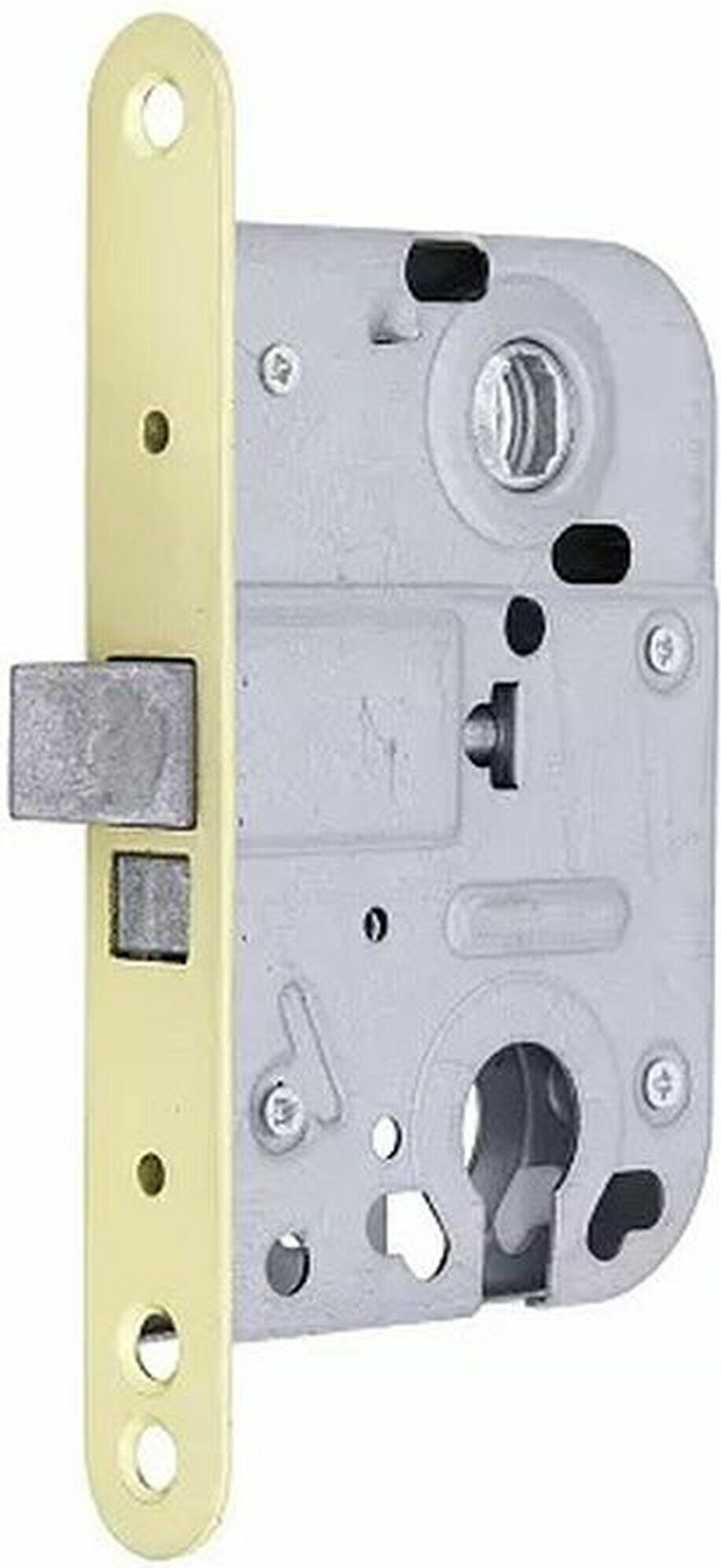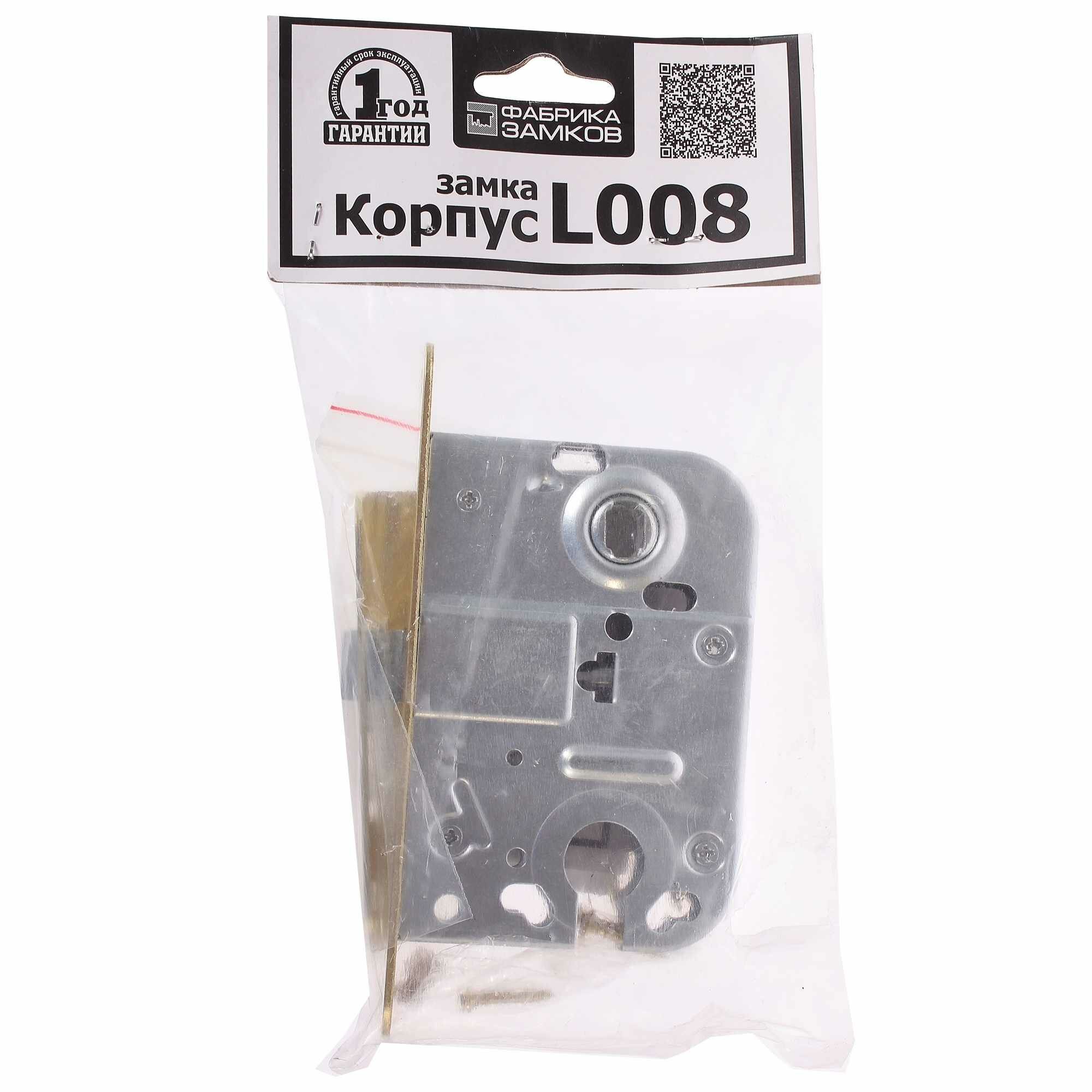 Корпус замка «Фабрика замков» L 008 предназначен для установки в межкабинетные и межкомнатные двери. Модель имеет гальваническое покрытие и оснащена износостойким металлическим язычком. В верхней и нижней части корпуса имеются отверстия для установки ручки и замка.