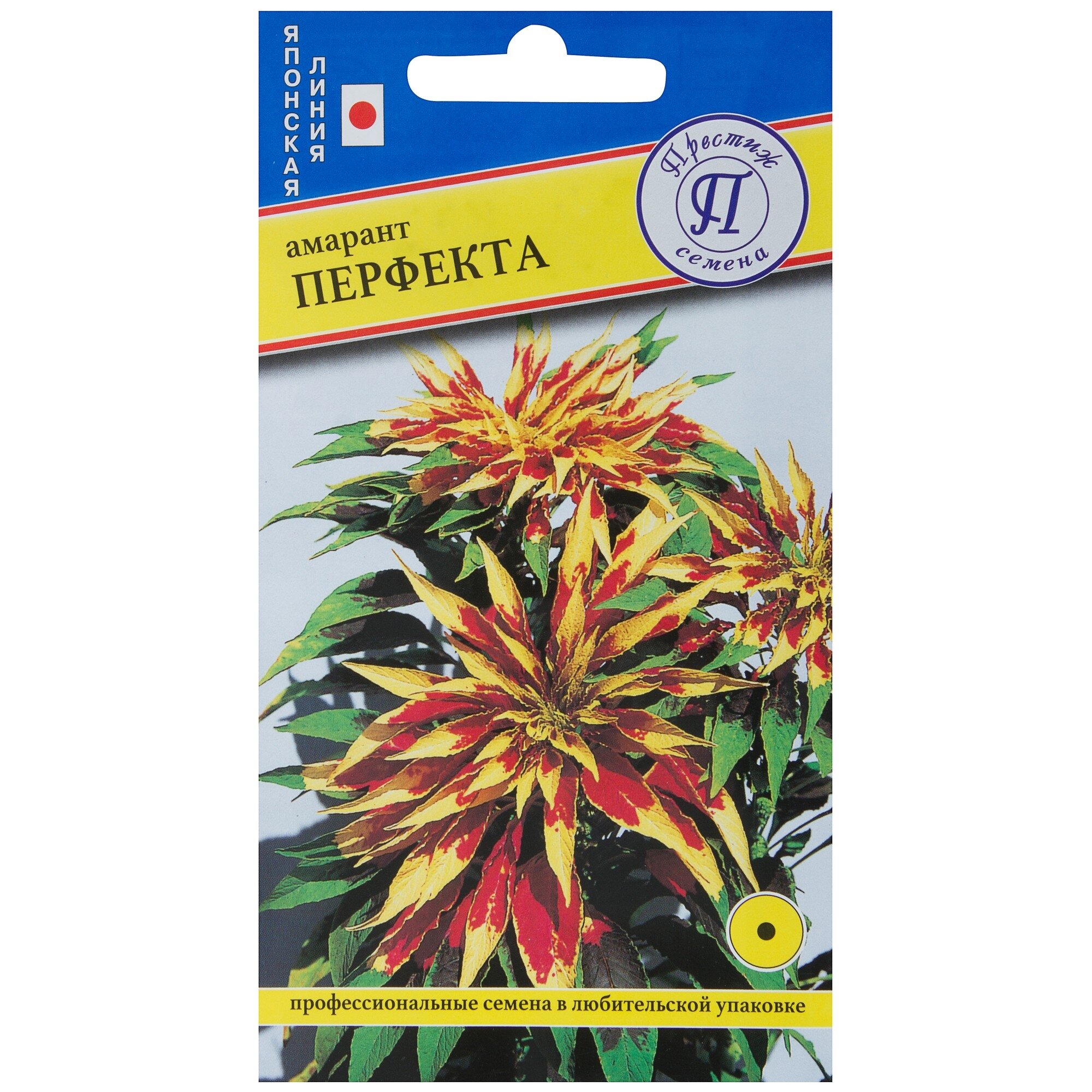 Амарант «Перфекта» — декоративный однолетник высотой до 90 см. Куст мощный, нижние листья зеленые с бордовыми пятнами, верхние сочетают насыщенный желтый и красный оттенки. Используется для центрального озеленения бордюров в окружении низко растущих цветов. Любит солнце, отлично переносит жаркий климат. На рассаду семена высевают с февраля по апрель. В открытый грунт саженцы высаживают в мае-июне.