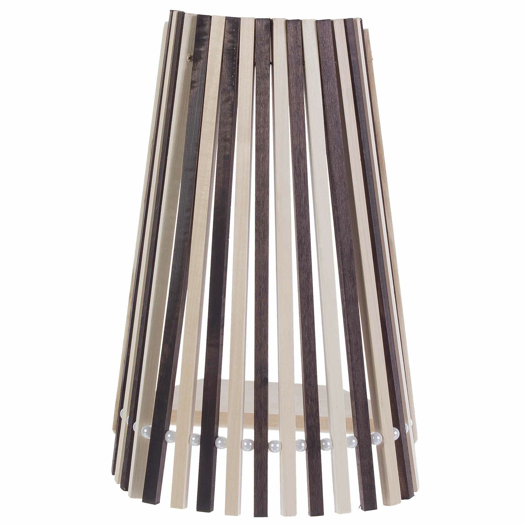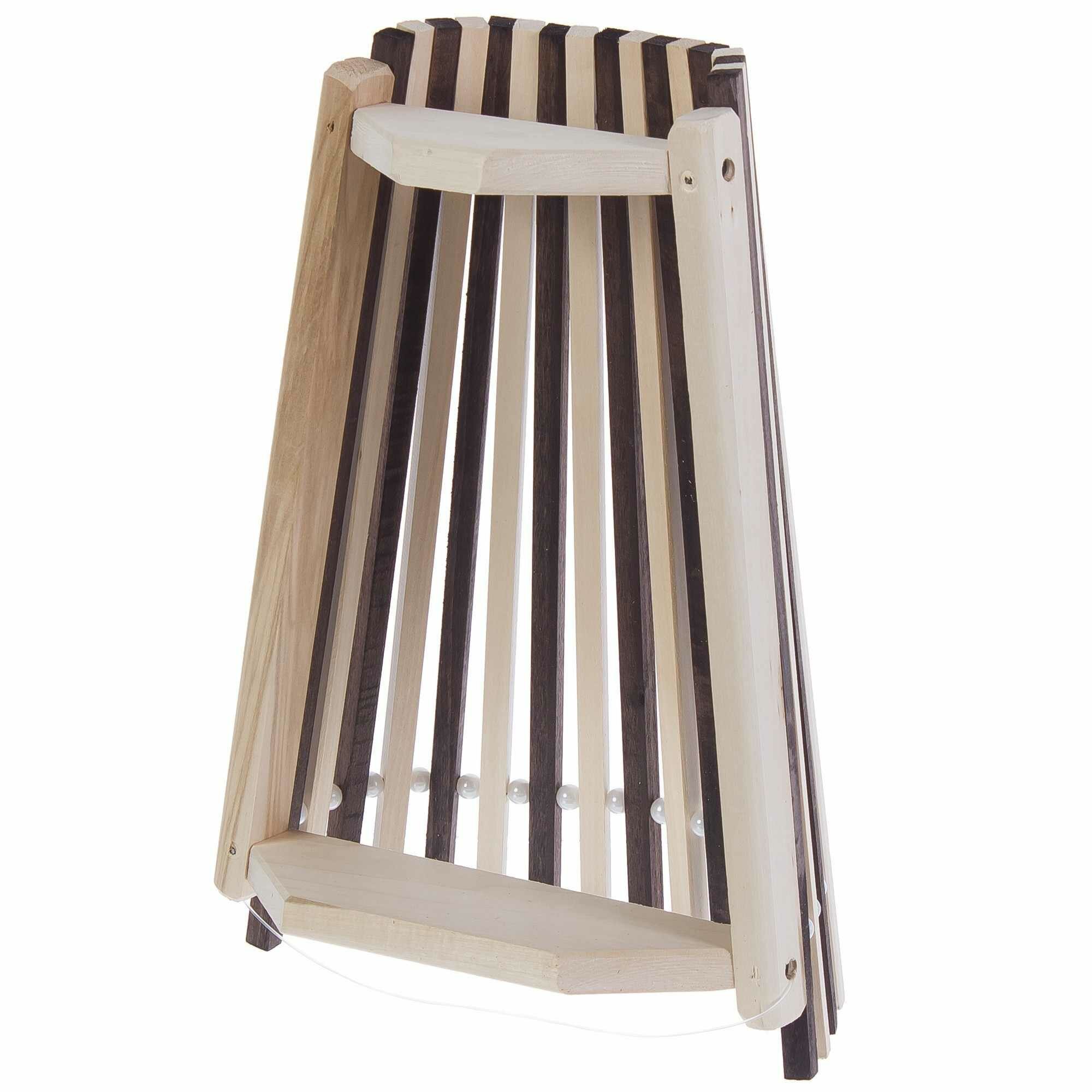 Абажур угловой полоска «Луч» позволяет рационально использовать полезную площадь помещения бани или сауны и создать комфортное освещение. Лицевая часть состоит из чередующихся светлых и темных деревянных полосок, которые красиво рассеивают свет. Дополнительным украшением абажура служат маленькие искусственные жемчужинки.