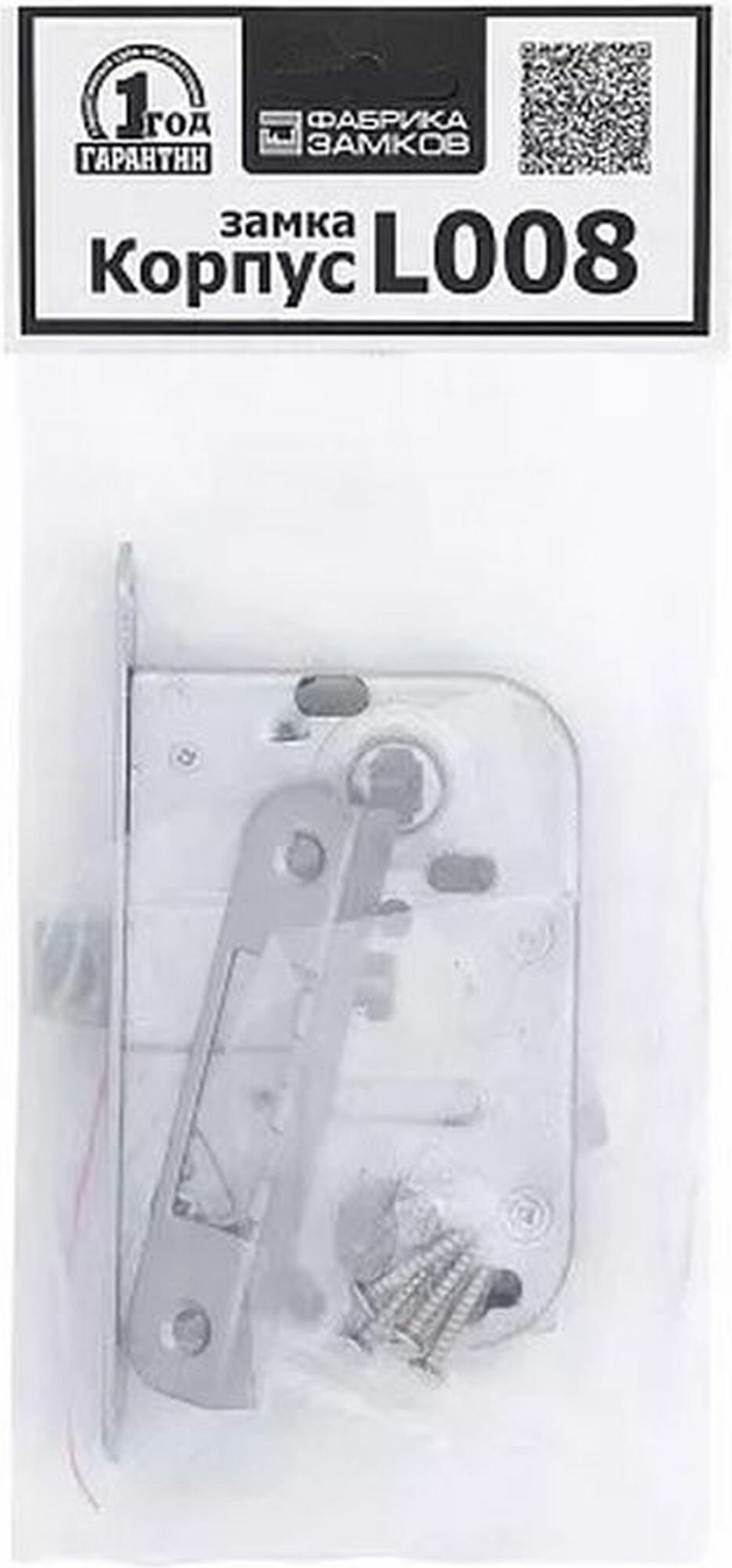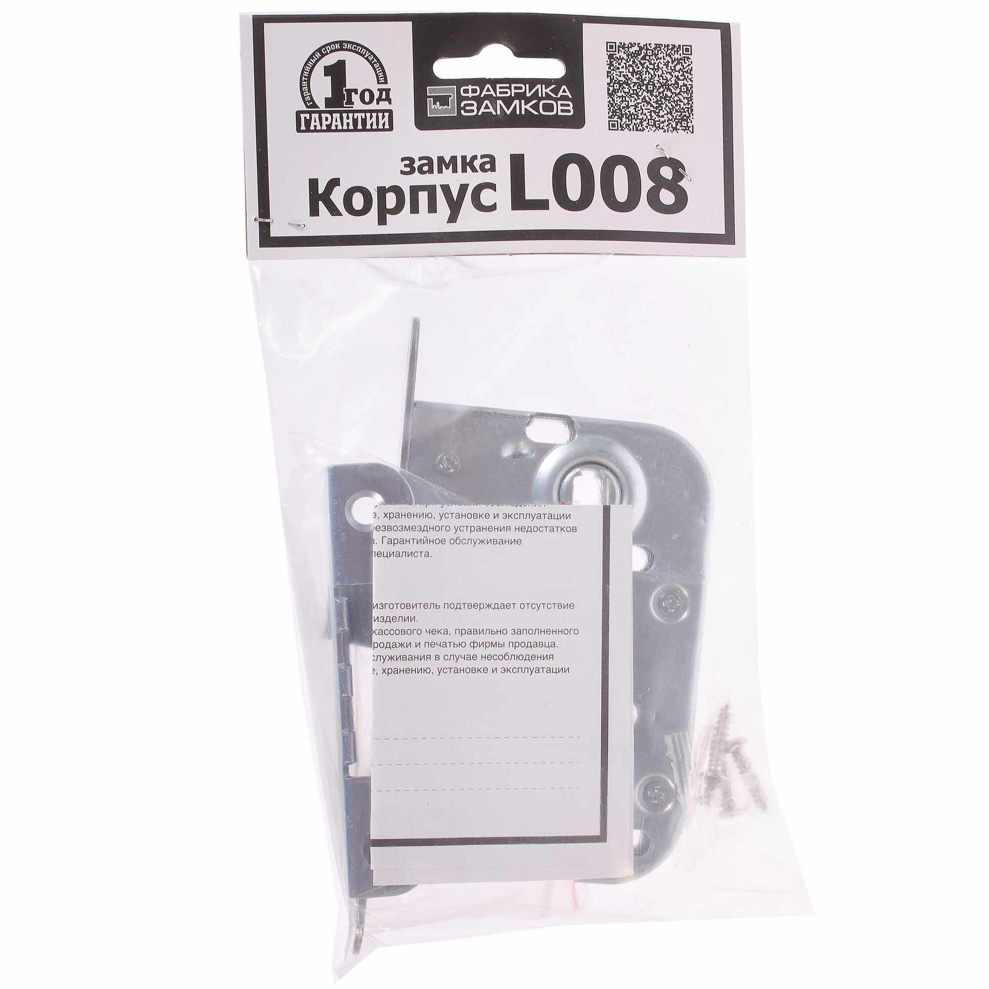 Корпус замка L 008 SC предназначен для межкомнатных и кабинетных дверей. Металлический язычок отличается износостойкостью и обеспечивает длительный срок службы. Отдельный корпус без цилиндрового механизма («личинки») в комплекте позволяет подобрать цилиндр, соответствующий условиям использования и требованиям к взломостойкости двери. Цвет корпуса — серый.