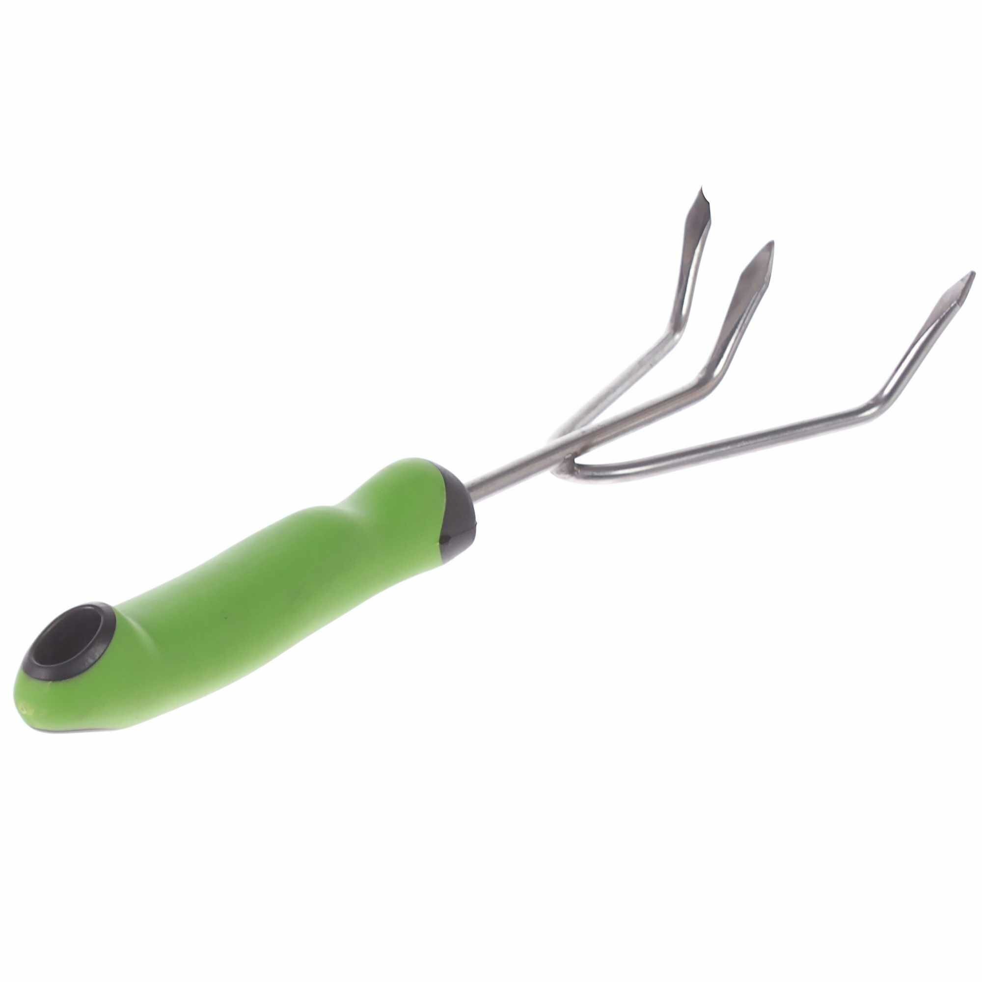 Рыхлитель Geolia — ручной инструмент для измельчения крупных земляных комьев перед высадкой растений и для аэрации почвы на грядках. Общая длина изделия 31,3 см, ширина рабочего полотна — 9,4 см. Инструмент изготовлен из нержавеющей стали. Отличается износостойкостью и прочностью, длительным сроком эксплуатации. Пластиковая ручка длиной 14,7 см и диаметром 9,2 мм удобно лежит в ладони, а благодаря ребристой поверхности не выскальзывает во время садово-огородных работ.