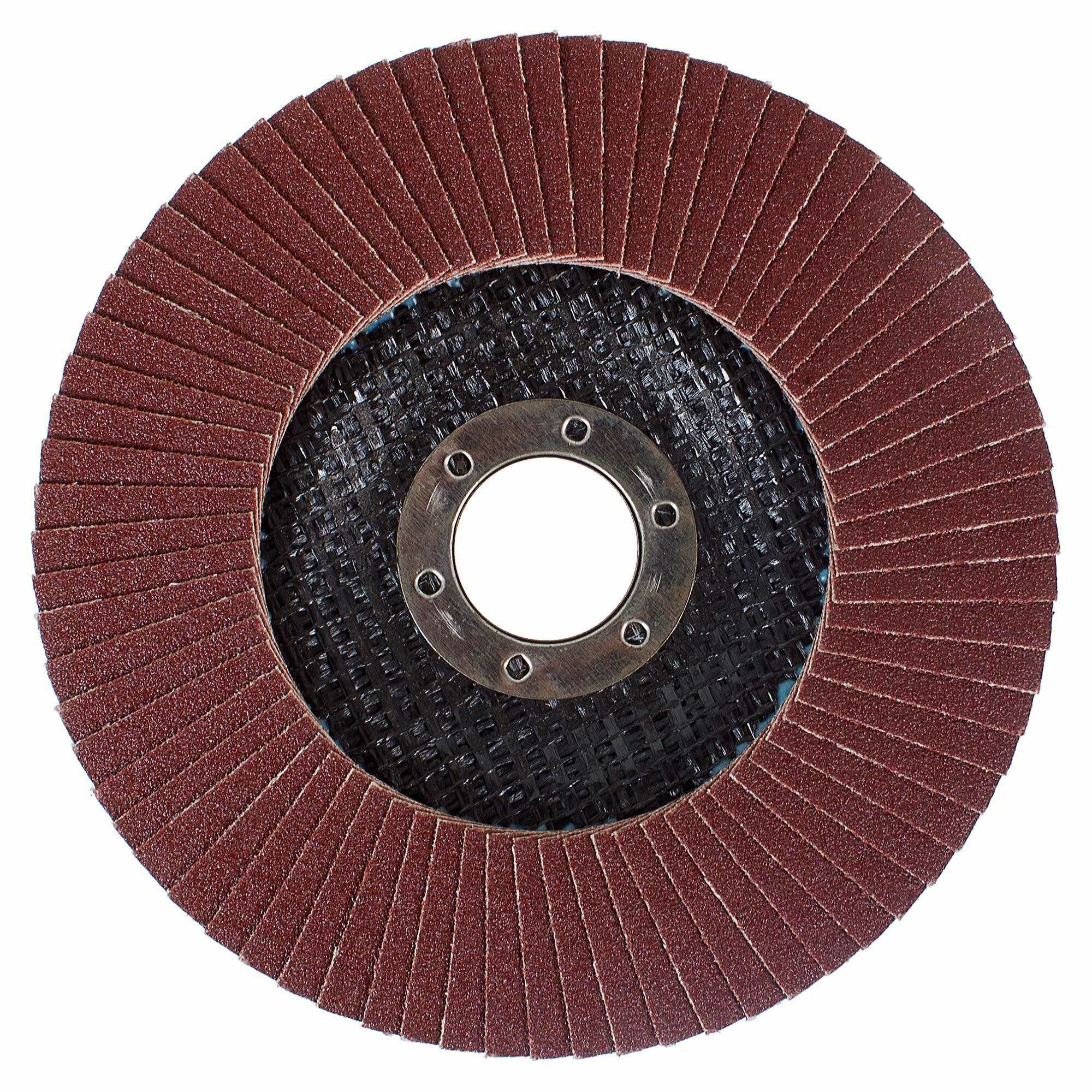 Круг с зернистостью 120 подходит для грубой обработки материала: удаления старых покрытий, зачистки поверхности от ржавчины и окалины, предварительного выравнивания плоскостей.