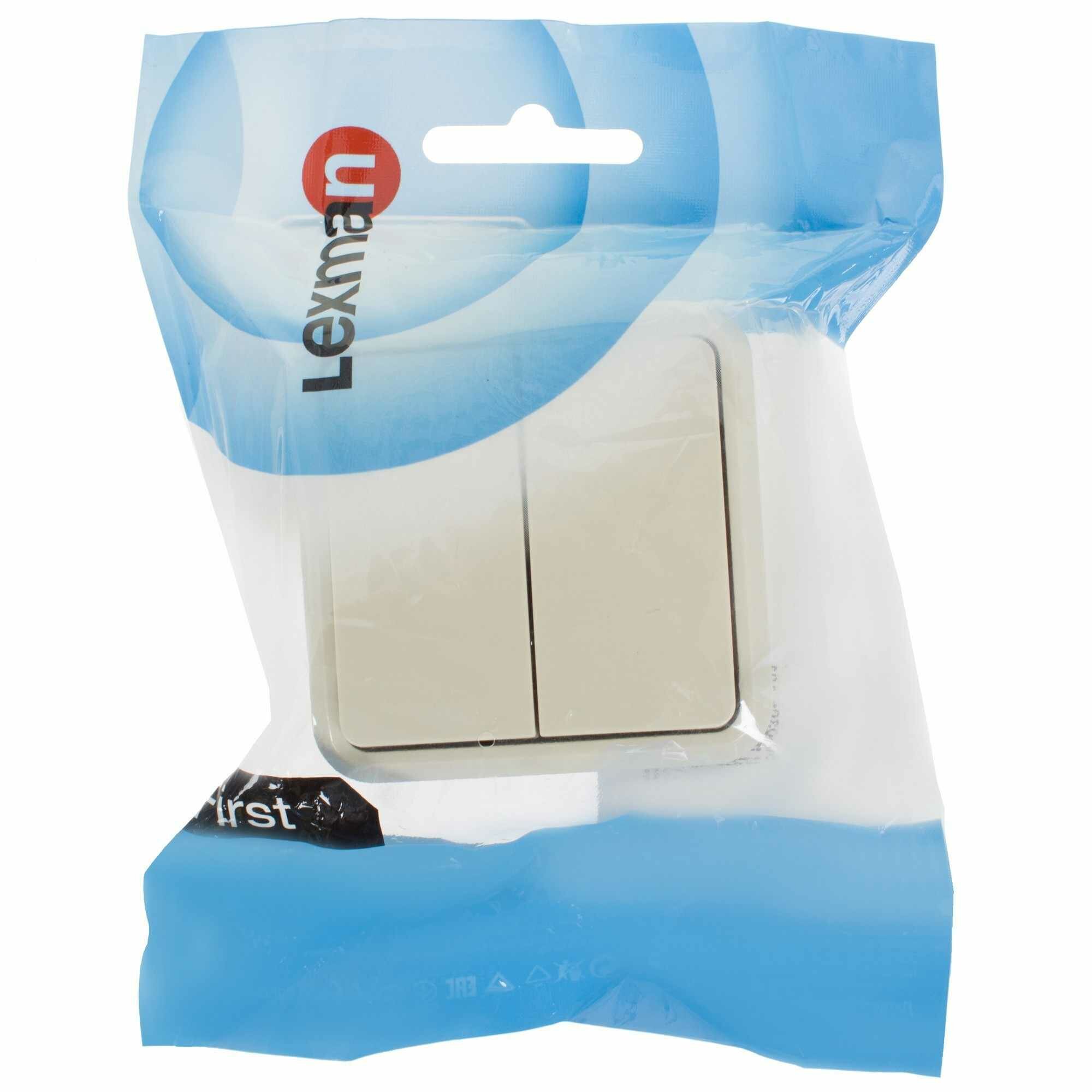 Выключатель накладной Lexman First 2 клавиши цвет бежевый
