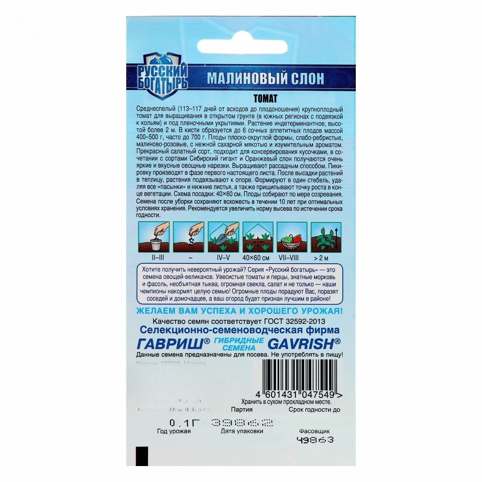 | Тип продукта | Семена овощных культур |