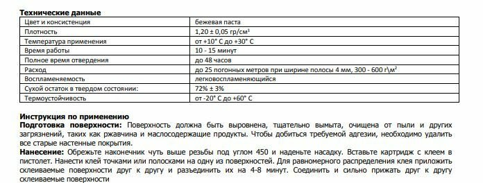 | Упаковка | картридж для пистолета |