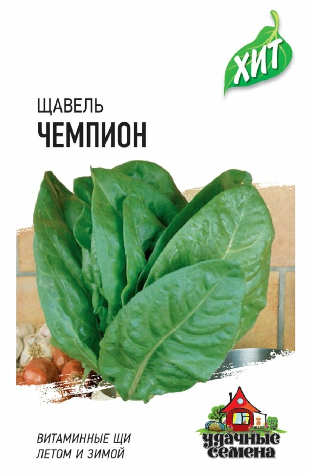 **Семена Щавель «Чемпион»** высеваются в открытый грунт, в теплицы, могут выращиваться на подоконнике, отличается морозоустойчивостью. Растение кустистое, многолетнее, листья удлиненные, зеленые, сочные. Стебель сочный, мясистый, зеленого цвета, у основания — бордовый.