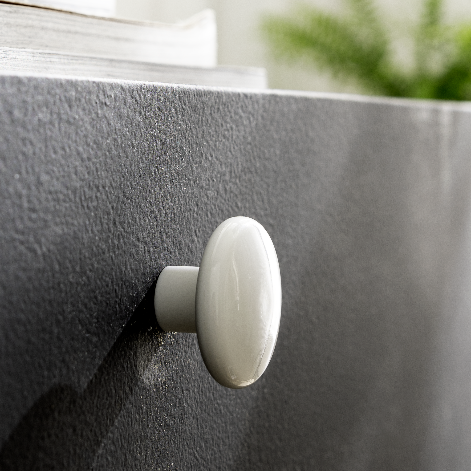 Ручка-кнопка мебельная Inspire Snow шириной 39,5 мм рассчитана на использование с дверцами шкафов и межкомнатными дверями. Ее вес равняется 18 г, высота составляет 25,5 мм. В комплект поставки включен винт для крепления длиной 4,5 см.