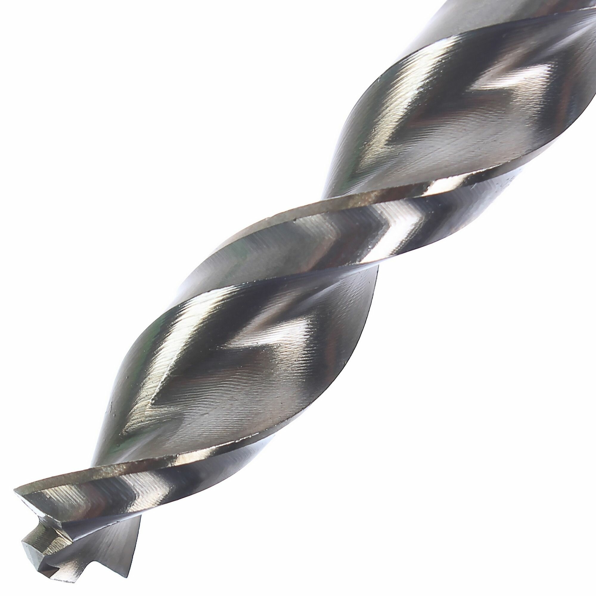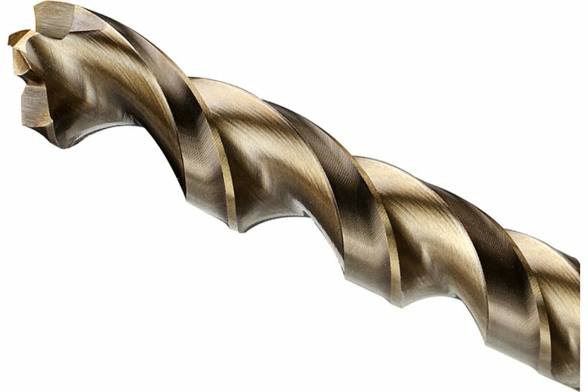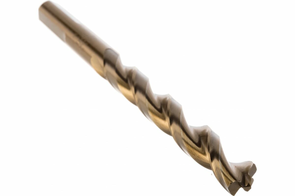 На хвостовике есть три фрезерованных паза для защиты сверла от прокручивания в патроне. Заточка режущей кромки двойная, с выступом по центру (чтобы не накернивать нужное место перед сверлением). Работать с таким сверлом быстрее и проще, чем с бюджетными вариантами. Изделие произведено в Германии.