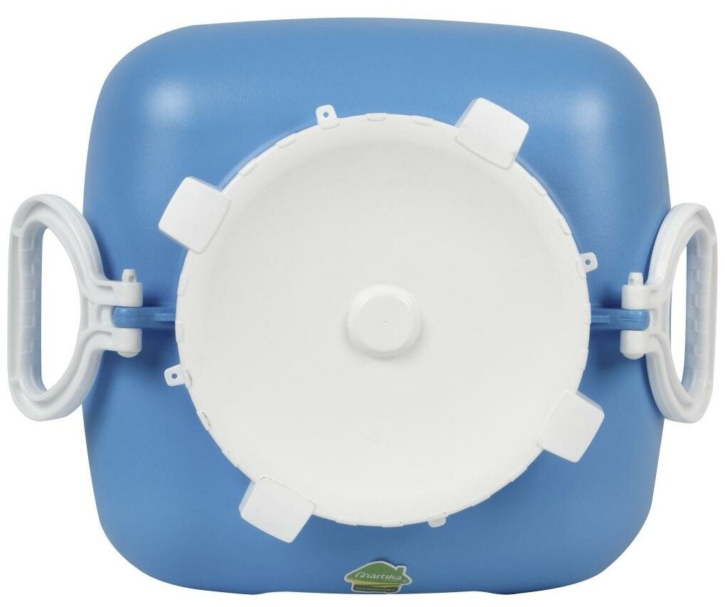 Фляга «Гранде» — универсальная пластмассовая емкость объемом 20 л для хранения пищевых продуктов, воды и прочей жидкости. Может использоваться для квашения овощей, засолки мяса и рыбы. Фиолетовая фляга бочкообразной формы поделена на секции, усилена ребрами жесткости. Оснащена широкой горловиной, крышкой с выступами для надежного закрывания и язычком для опломбирования. Эргономичные ручки упрощают переноску тары. Страна производства — Россия.