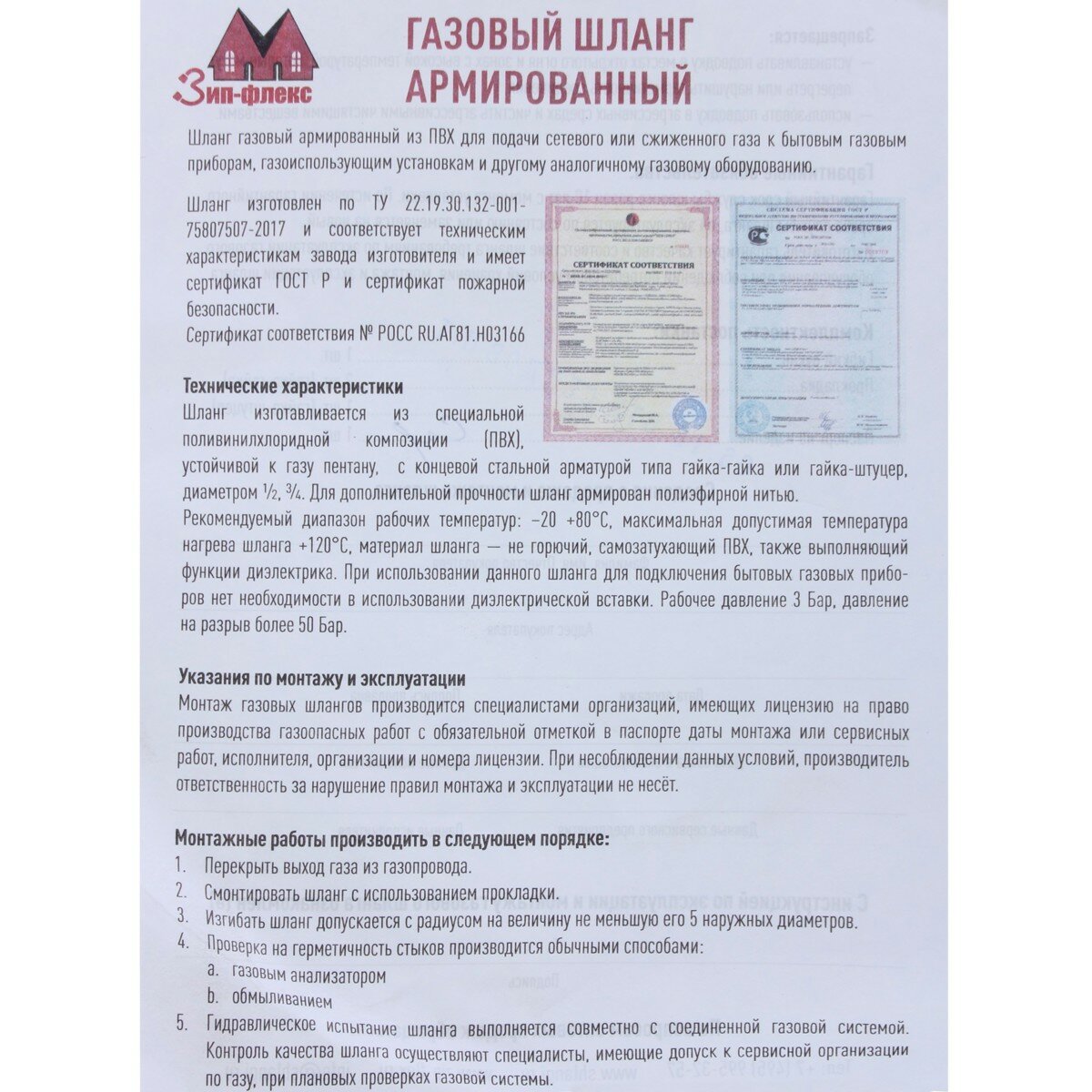 Гибкая подводка для газа имеет длину 100 см. Армированный полиэфирной нитью гибкий шланг служит для подключения к магистрали газовых приборов. Обеспечивает надежное и герметичное соединение, не привязывая жестко прибор к газовой трубе. Подводка монтируется при помощи соединения штуцер-гайка с резьбой 1/2 дюйма. Материал шланга не проводит электричество, поэтому установка диэлектрической вставки не требуется.