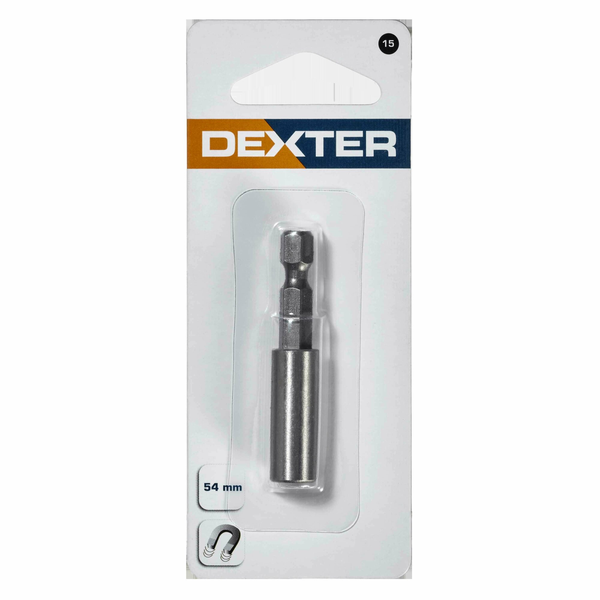 Держатель для бит Dexter длиной 54 мм предназначен для установки в патрон шуруповерта. Выступает в роли удлиняющего элемента при закручивании и откручивании резьбовых крепежных элементов с использованием бит. Удобен для использования в труднодоступных местах. Приспособление изготовлено из прочного металлического сплава, стойкого к деформации и коррозийным процессам. Продается в блистерной упаковке.
