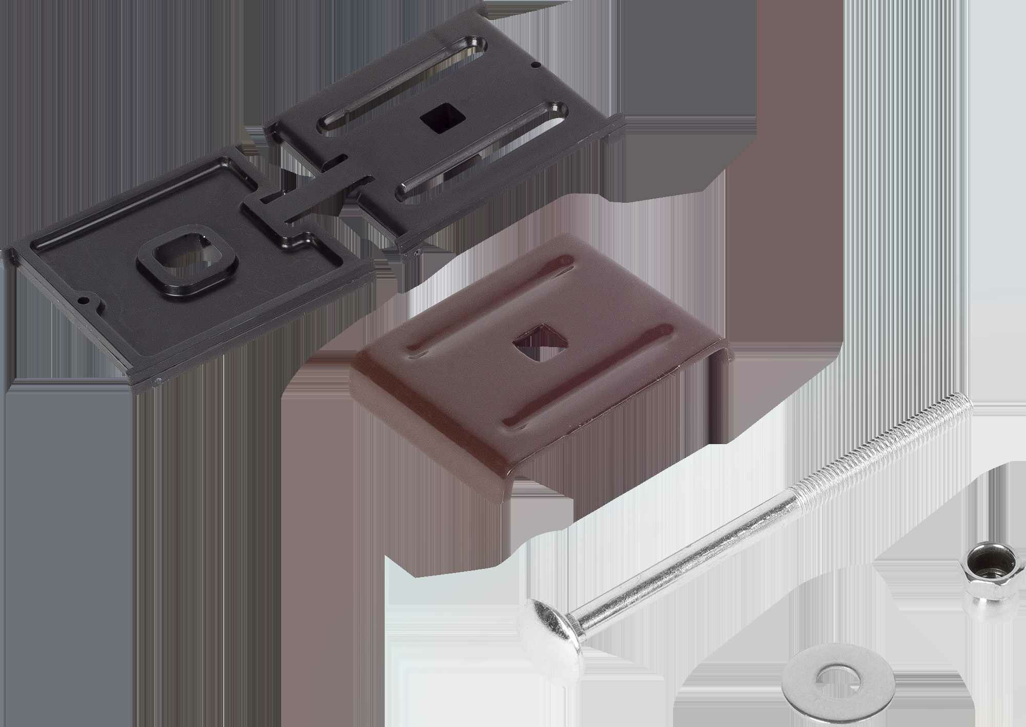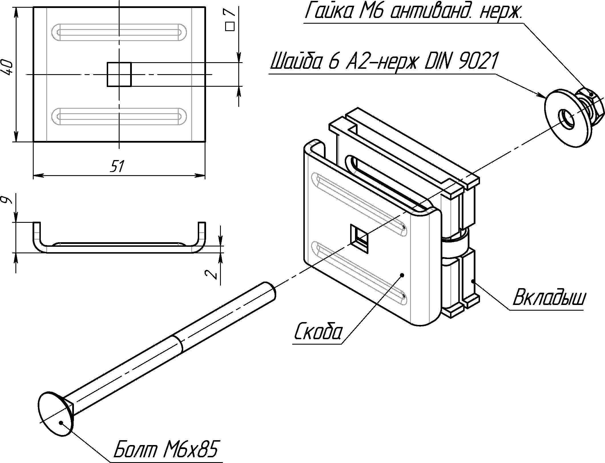 **Крепление (скоба и болт М6x85) Grand Line** используется для монтажа панелей к столбам при возведении заборов. Обеспечивает высокие эстетические и антивандальные характеристики конструкции.