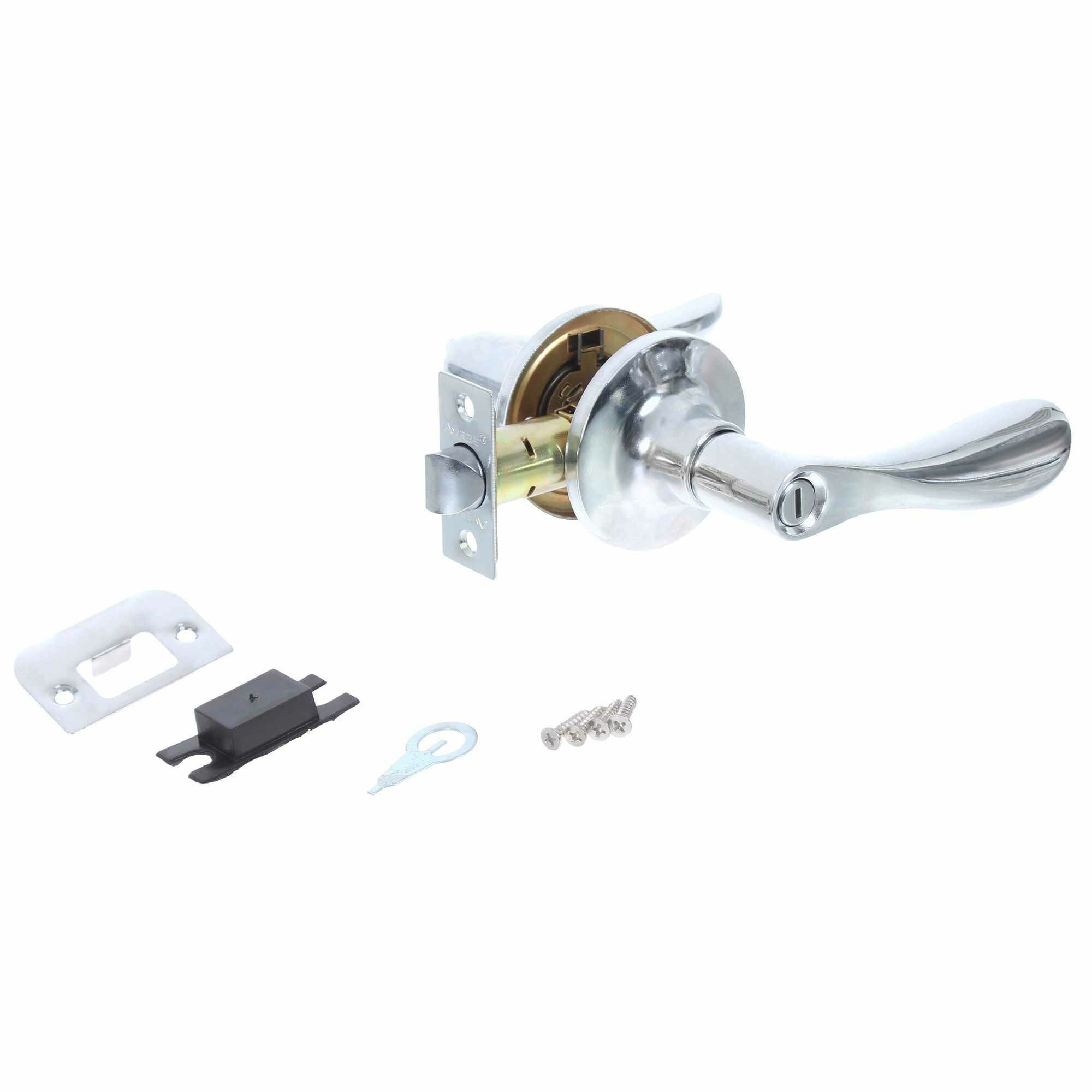 Ручка с фиксатором применяется в комнатах для внутреннего запирания, например в санузле или спальне. Конструкция не оснащается механизмом под ключ, однако имеет поворотный фиксатор, действующий с одной стороны.