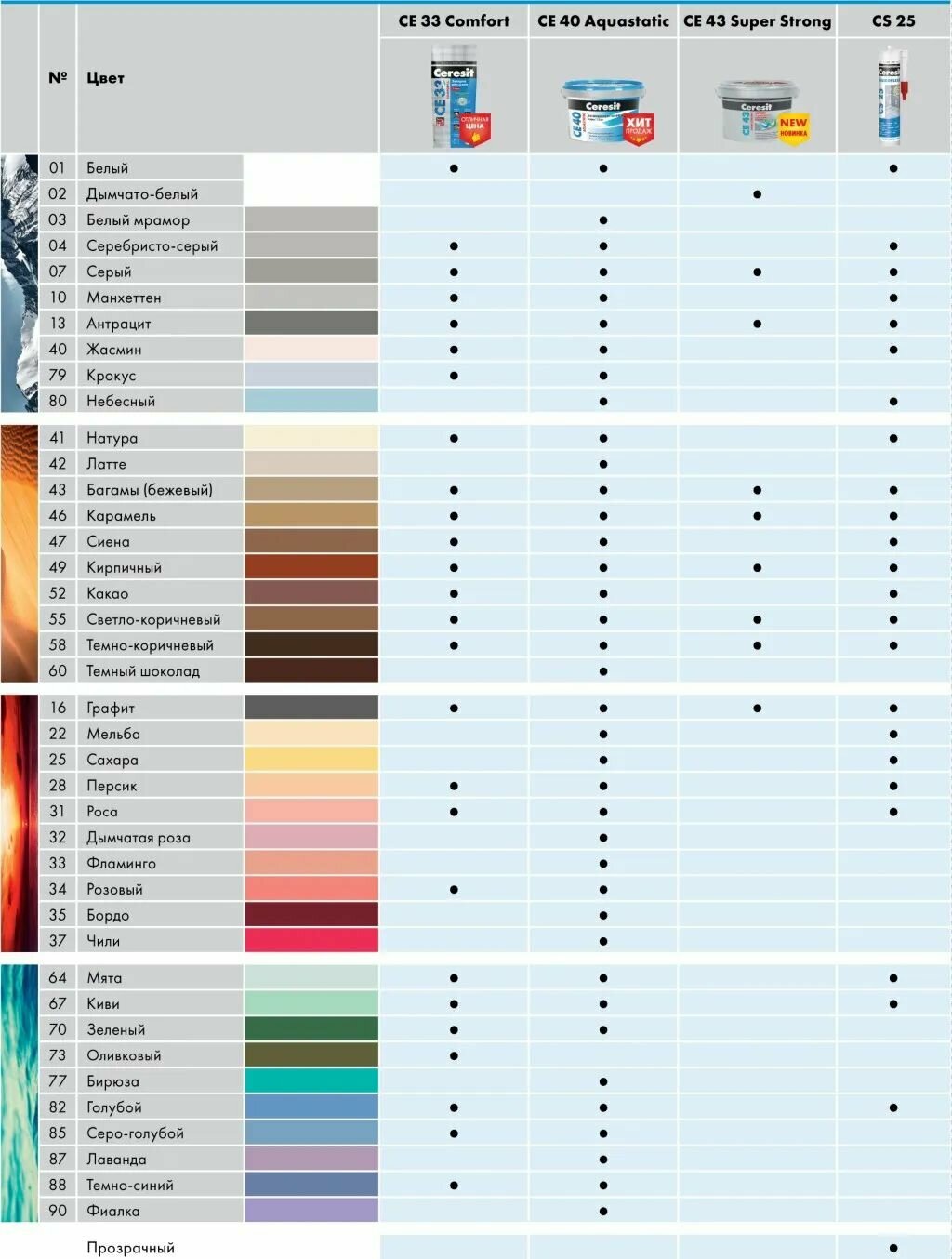 **Цветная затирка для швов Ceresit CE 33 Comfort** - предназначена для заполнения швов керамических и каменных облицовок, устроенных на полах и стенах внутри и снаружи зданий. Применяется при ширине шва от 1 до 6 мм на недеформирующихся основаниях: бетоне, цементных стяжках и штукатурках.