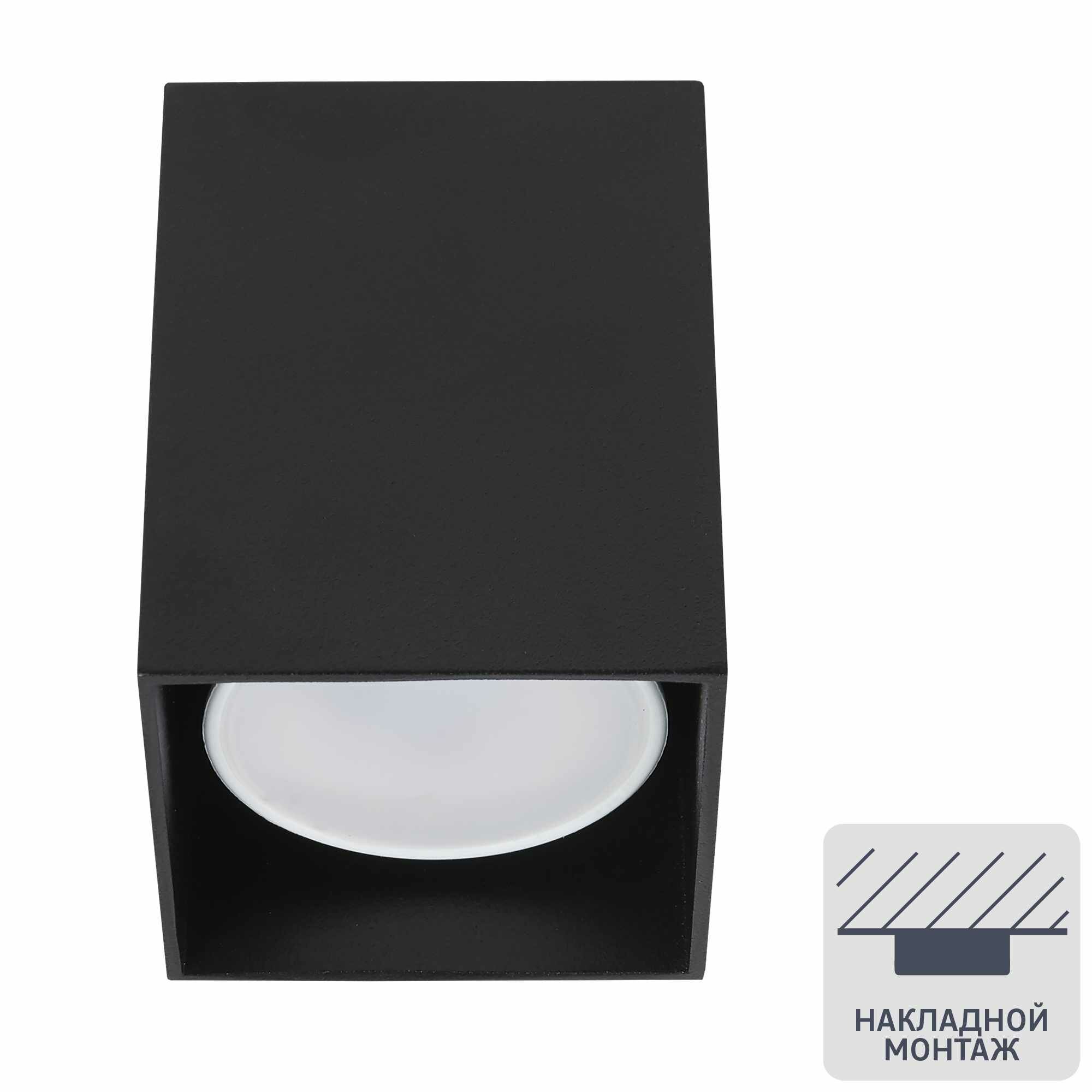 Светильник накладной квадратный GU10 8 см цвет чёрный Светкомплект