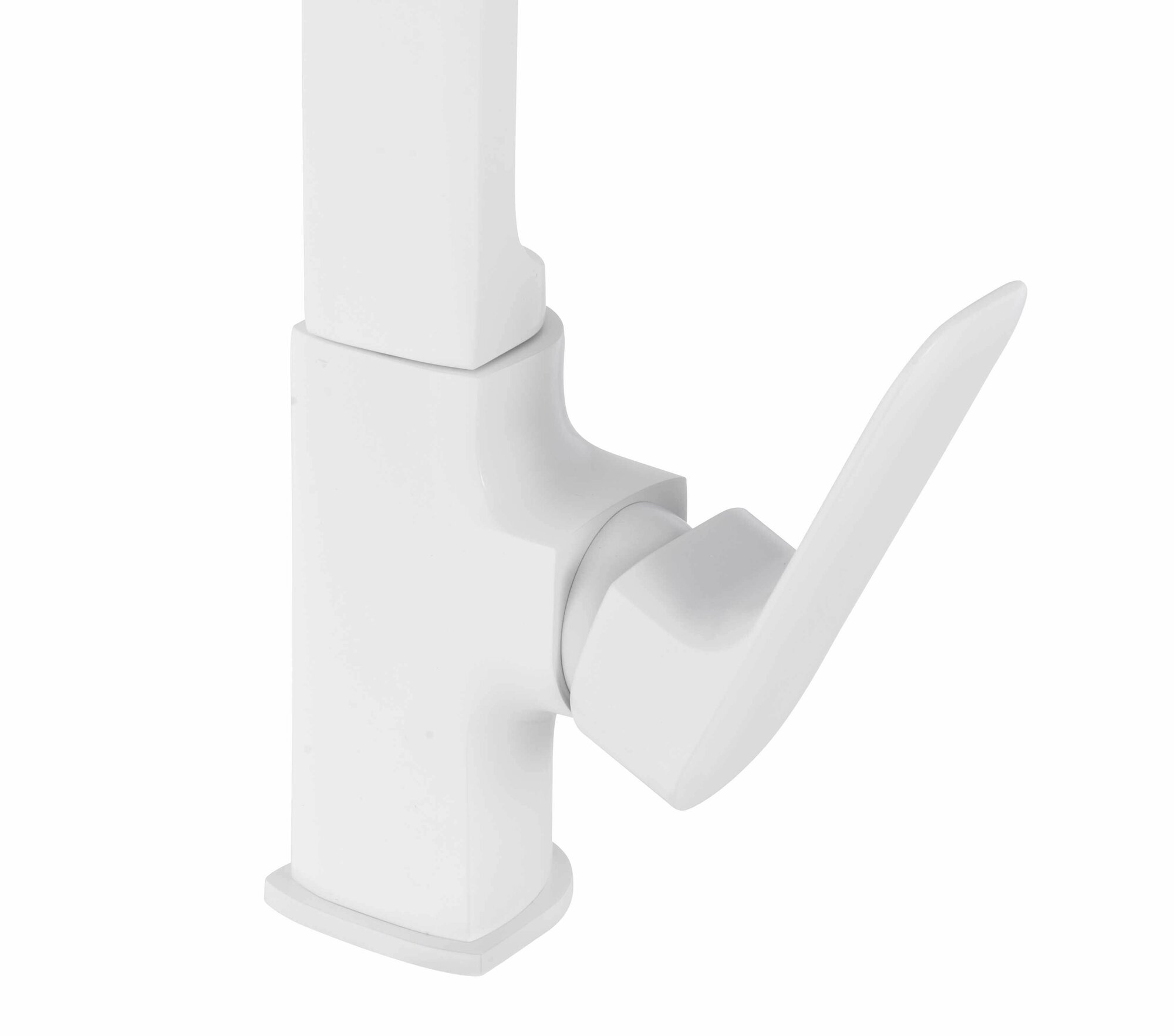 Смеситель для кухни Delinia Remix белый — сантехнический прибор, который регулирует и смешивает потоки воды для получения необходимой температуры и напора. Излив «L». Высота излива — 26,3 см, общая высота — 28,1 см.
