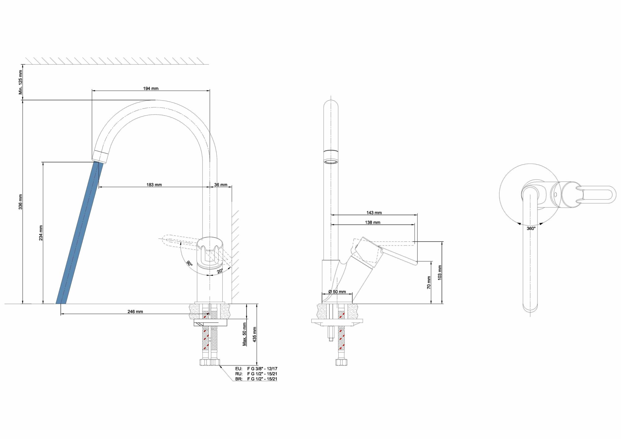 Смеситель для кухни Delinia Elena — сантехнический прибор, который регулирует и смешивает потоки воды для получения необходимой температуры и напора. Излив высокий («U»). Высота излива — 23,4 см, общая высота — 33,6 см.