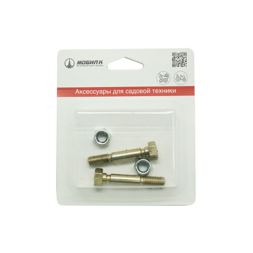 Комплект срезных болтов Мобил К необходим для крепления шнекового механизма снегоуборщика. Болты защищают двигатель машины от повреждений, принимая на себя излишнюю энергию при ударе ковша о твердые предметы, которые могут скрываться под снегом.