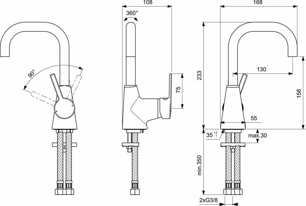 Излив подвижный, поворачивается на 360°, что удобно при использовании моек с двумя и тремя отделениями.