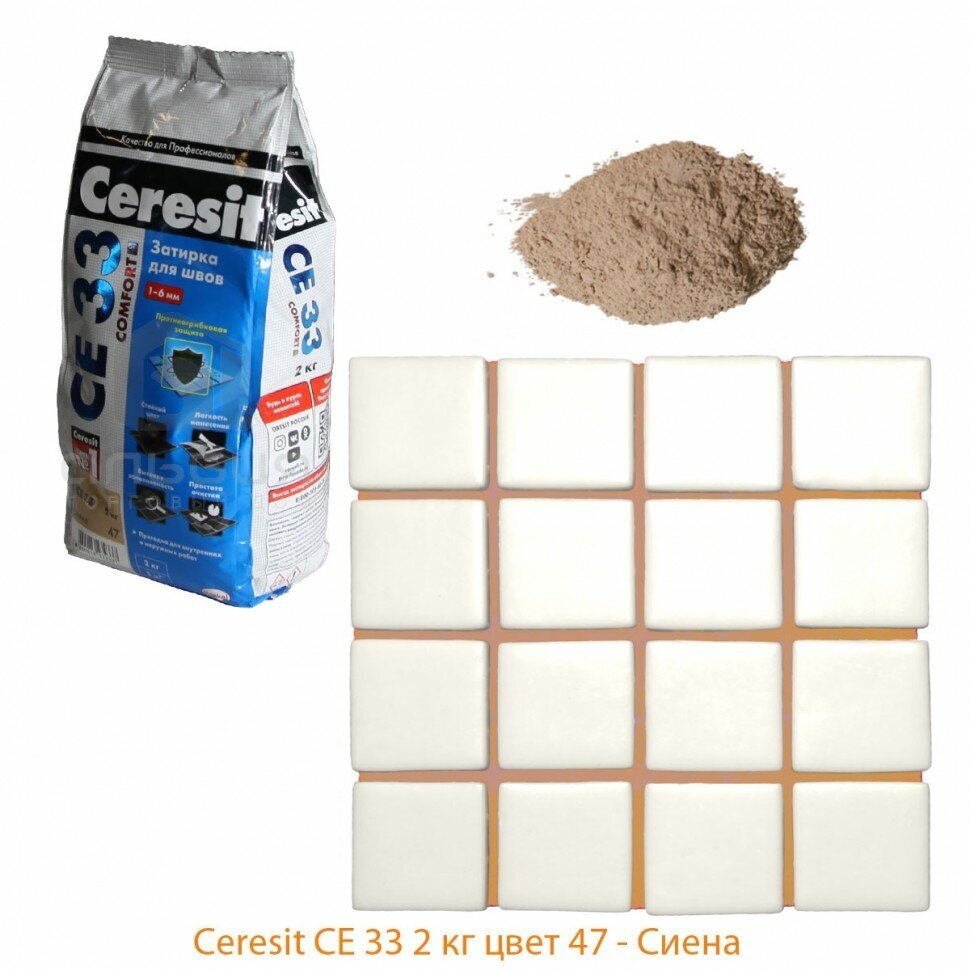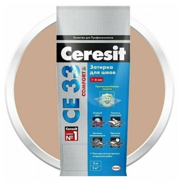 **Цветная затирка для швов Ceresit CE 33 Comfort** - предназначена для заполнения швов керамических и каменных облицовок, устроенных на полах и стенах внутри и снаружи зданий. Применяется при ширине шва от 1 до 6 мм на недеформирующихся основаниях: бетоне, цементных стяжках и штукатурках. ### Преимущества: - Водостойкая, с противогрибковым эффектом, подходит для влажных зон. - За счет гладкой поверхности шва устойчива к загрязнениям и легко моется. - Морозостойкая, пригодна для наружных работ.