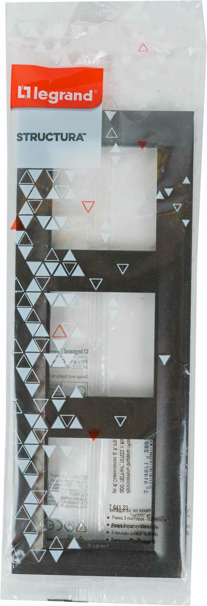 Рамка для розеток и выключателей Legrand Structura, 3 поста, магнезиум, металлик.