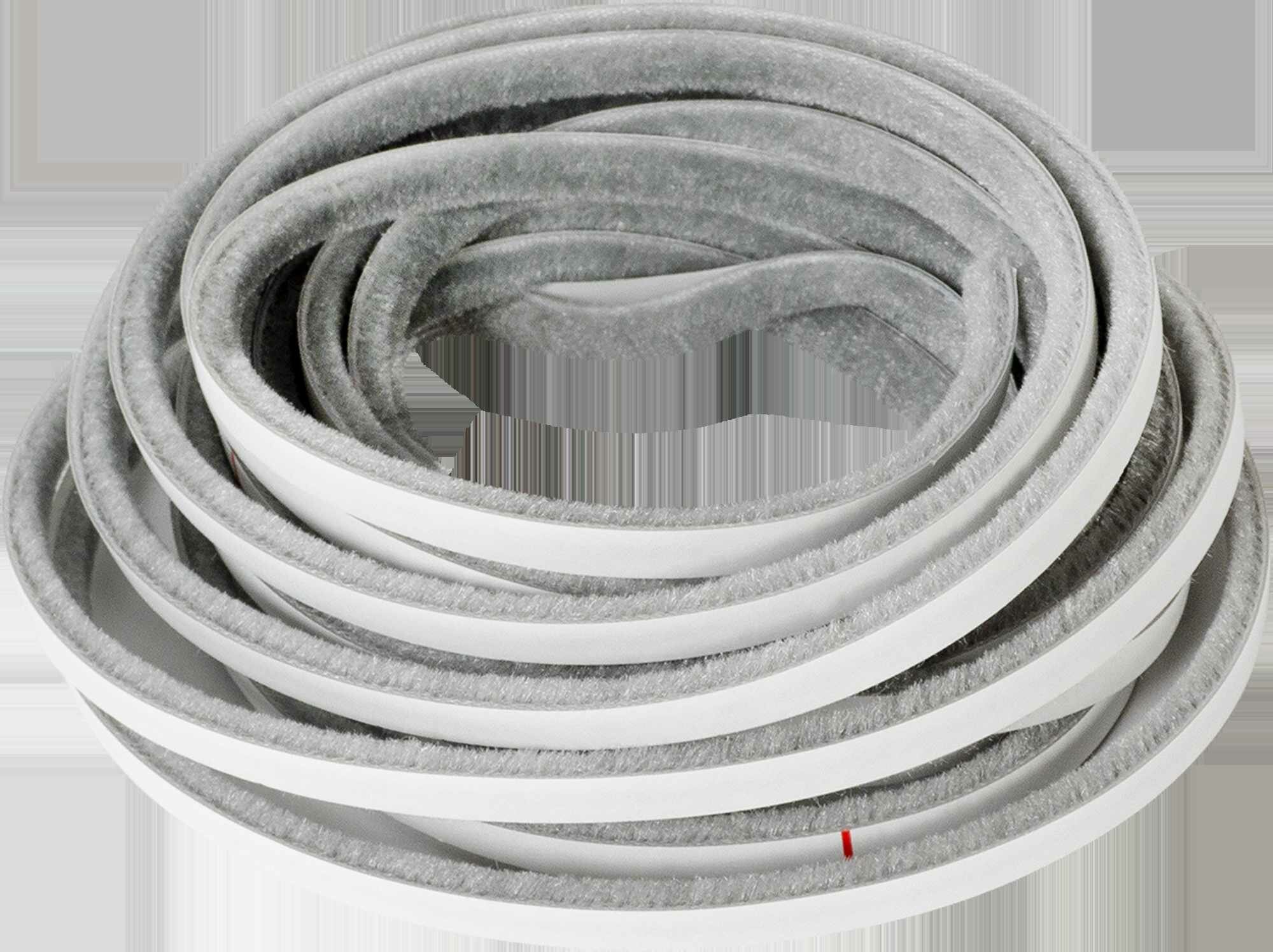 Самоклеящаяся серебристого цвета щетка монтируется на боковой профиль двери.