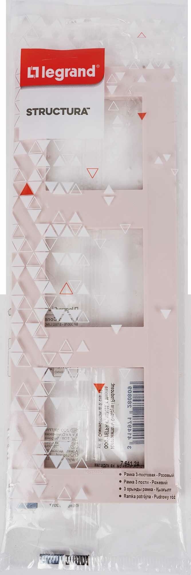 Рамка для розеток и выключателей Legrand Structura, 3 поста, розовый.