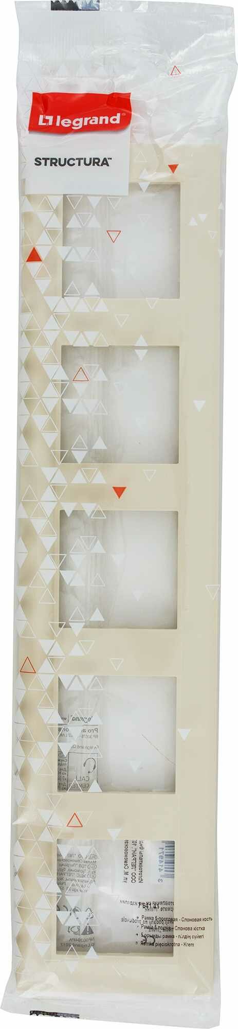 Рамка для розеток и выключателей Legrand Structura, 5 постов, цвет слоновая кость.