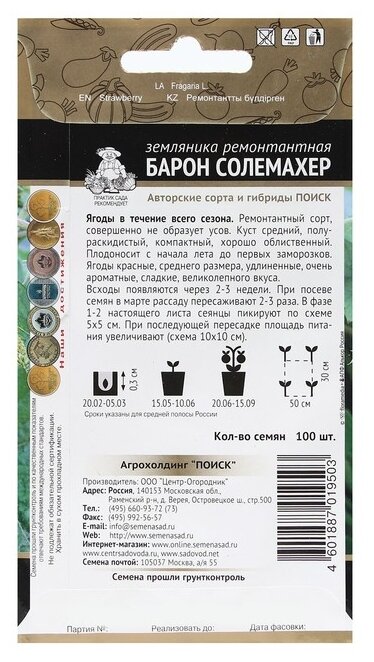 На сегодняшний день товар «Семена Земляника ремонтантная «Барон Солемахер» (А) 1 г ПОИСК» можно купить с кешбеком в 1 магазине: Яндекс.Маркет