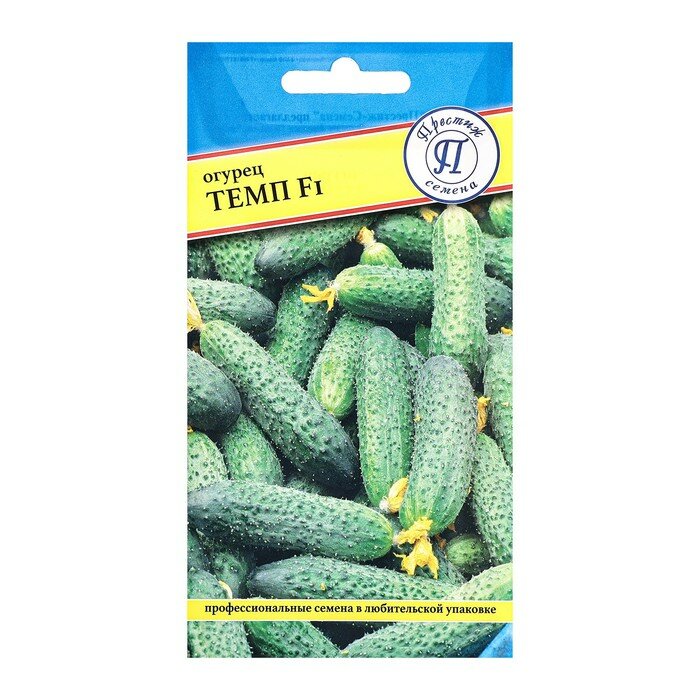 **Семена Огурец «Темп» F1** предназначены для выращивания в пленочной теплице. Растение относится к скороспелым сортам корнишонного типа. Листья темно-зеленые, среднего размера. Зеленец небольшого размера, цилиндрической формы, светло-зеленый, длиной 7-9 см. Поверхность с мелкими бугорками, опушенная. Период от всходов до урожая — 42-44 дня.