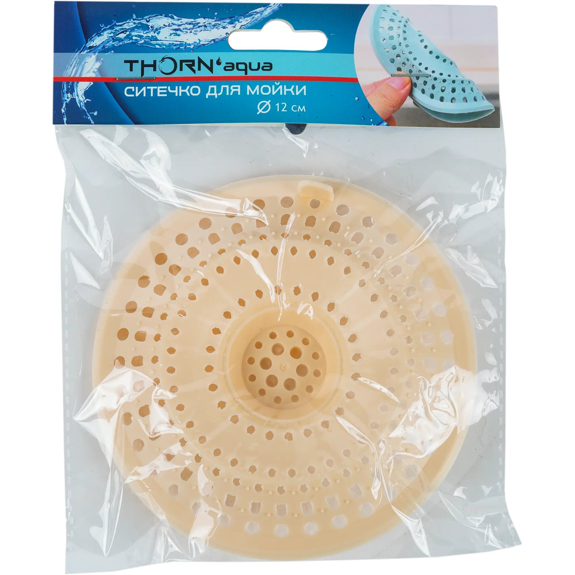 Ситечко для мойки с перфорированной поверхностью, выполненное из силикона, минимизирует риск засора труб. Прочный эластичный аксессуар хорошо фиксируется в раковинах, отличается удобством использования — задерживаемые изделием частицы пищевых продуктов легко удаляются. Диаметр ситечка 12 см. Страна производства товара — Китай.