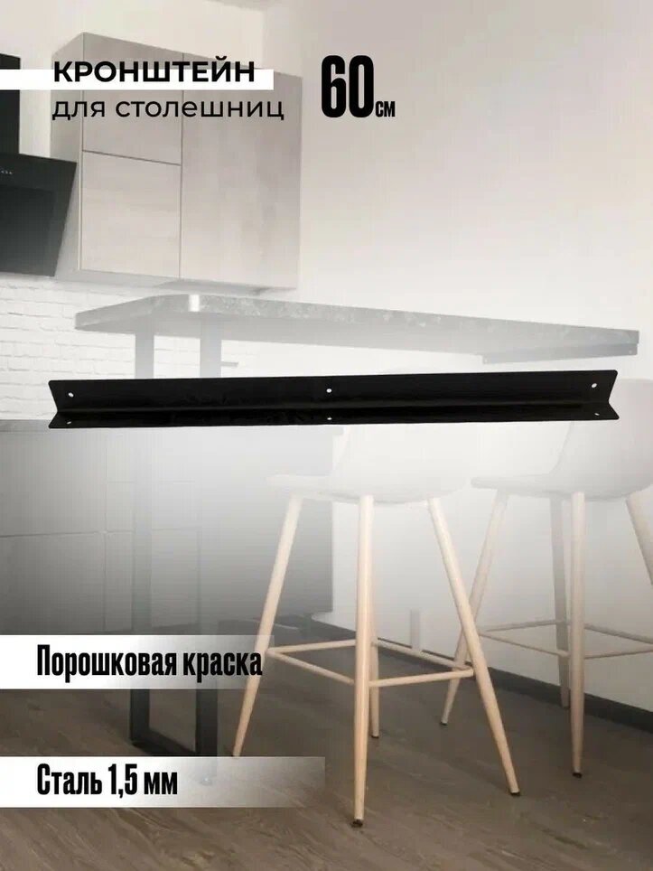 Кронштейн для крепления барной стойки к стене — это стальной профиль, позволяющий надежно зафиксировать столешницу. Допустимая нагрузка — 40 кг. Предусмотрены 6 отверстий для крепления к столешнице и поверхности стены, выбор крепежа зависит от материала основания. Страна-производитель — Россия.